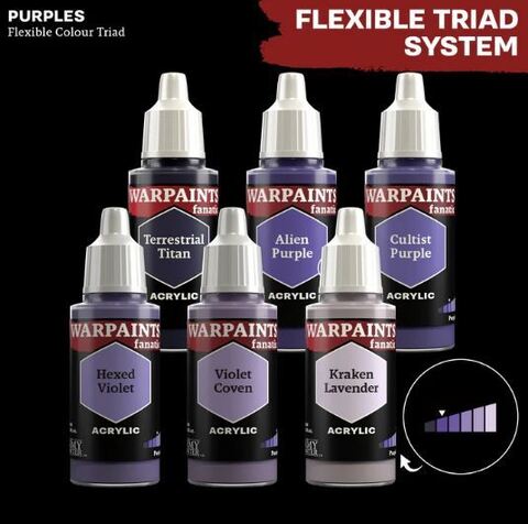 Warpaints Fanatic: Alien Purple — это глубокий фиолетовый, который соответствует Warpaint Air and Colour Primer с тем же названием. Это второй по темности тон из гибкой цветовой триады «Purples», а его практическое название — «Темно-фиолетовый».