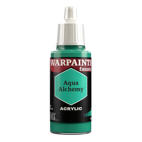 Warpaints Fanatic: Aqua Alchemy — это блестящий сине-зеленый, который является светло-голубым, хорошо подходит в качестве слоя или цвета для выделения. Это второй по светлоте тон из гибкой цветовой триады «Teals», и его практическое название цвета — «Яркий сине-зеленый».