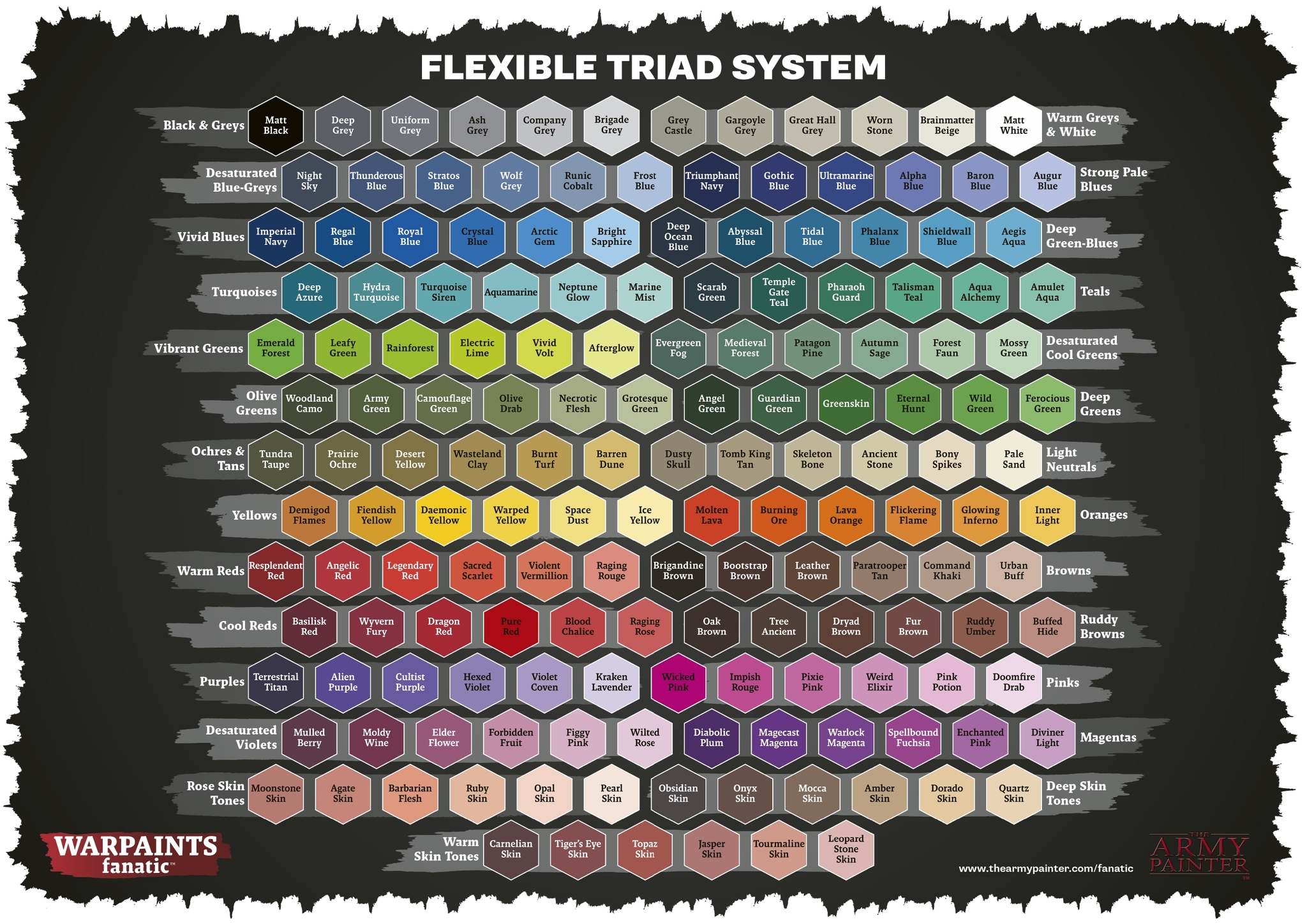 Линейка Fanatic предлагает более 200 цветов, разработанных в системе гибкой триады цветов. С системой гибкой триады цветов каждая краска попадает в сегмент или семейство цветов краски, которые производятся с использованием одного и того же корневого цвета. Каждый сегмент называется гибкой триадой, и внутри этого сегмента вы найдете шесть красок, которые варьируются по тону от темного до светлого с постоянным оттенком. Это позволяет легко и просто выбрать идеальную краску.