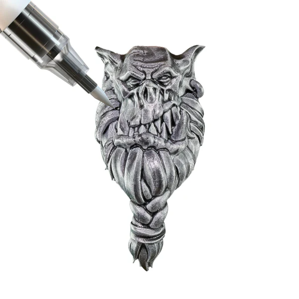 Блестящая серебристая металлическая краска для оружия, доспехов и механических деталей. Металлический пигмент сохраняет свою плотность от первого до последнего мазка.