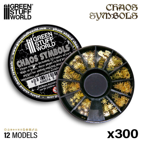 Этот набор включает 300 рун, символов и знаков на тему хаоса, каждый из которых мастерски изготовлен из латунных фототравленых деталей моделей, среди которых выделяется загадочная звезда хаоса. Выберите один из 12 различных вариантов, тщательно организованных в отдельные отсеки для вашего удобства. Эти замысловатые детали идеально подходят для улучшения доспехов, оружия и знамен ваших моделей и миниатюр, а также для украшения диорам, придающих им оттенок хаоса. Для оптимального нанесения мы рекомендуем использовать небольшое количество клея CA.