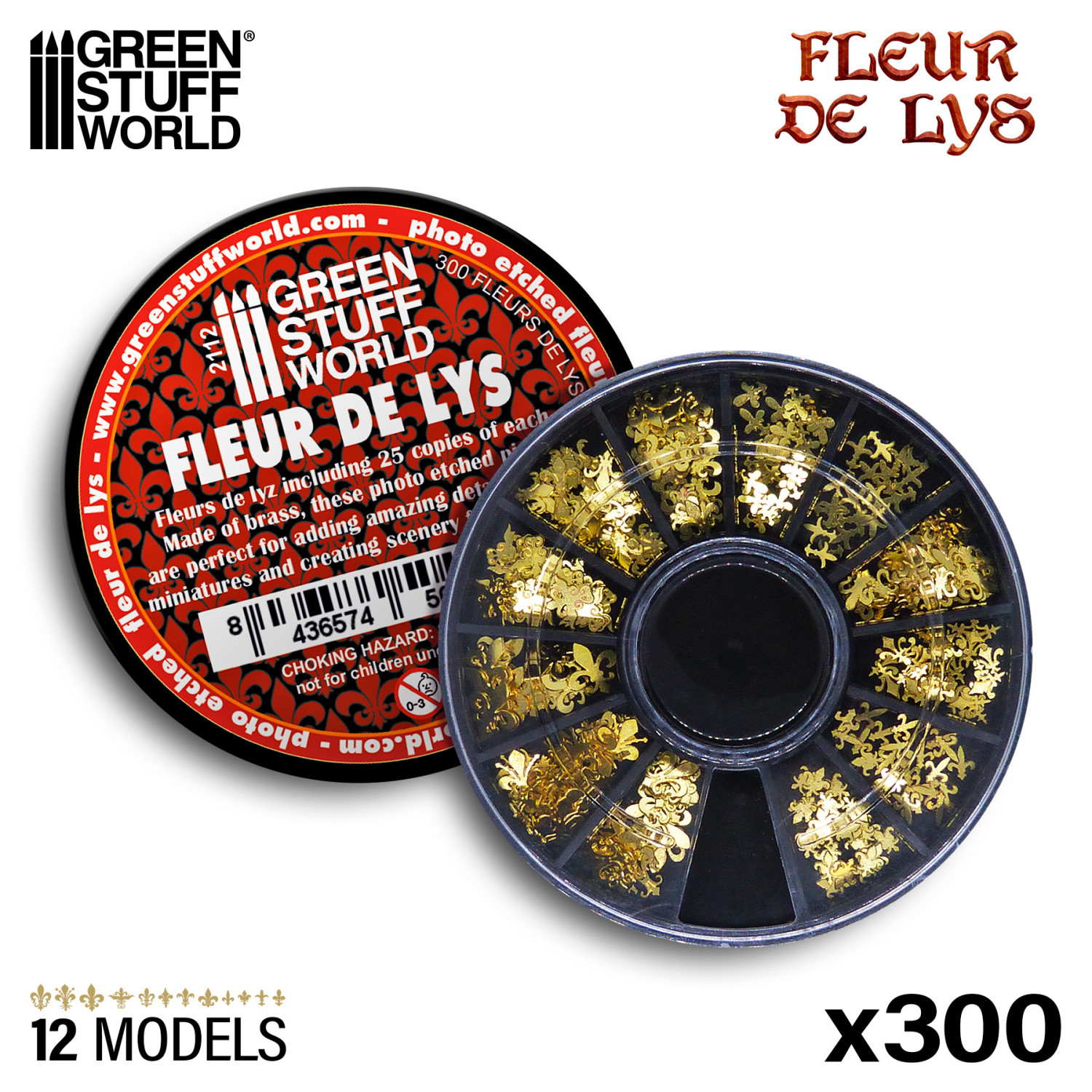 Коллекция из 300 символов и знаков в виде геральдической лилии, изготовленных из латуни. На выбор представлено 12 различных видов, разделенных на разные отсеки. Они идеально подходят для добавления деталей к доспехам, оружию и знаменам ваших моделей и миниатюр, а также для украшения диорам. Рекомендуем использовать цианоакрилатный клей в небольших количествах.