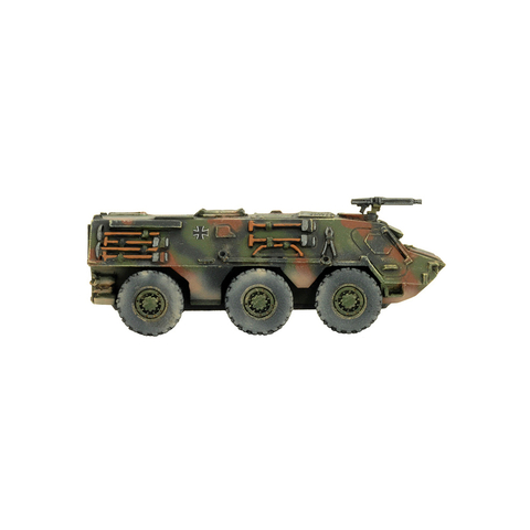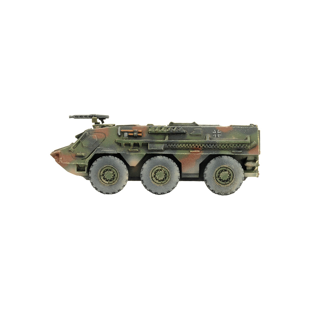 Транспортный танк «Фукс» (сокращенно TPz) — это шестиколесный, полностью амфибийный бронированный транспортер личного состава, предназначенный для выполнения различных задач, включая перевозку войск, инженерных войск, обезвреживание бомб, разведку на наличие ядерного, биологического и химического оружия и радиоэлектронную борьбу. Он может перевозить до восьми пассажиров и оснащен пулеметом MG3 на зенитной установке. При необходимости мобильной огневой мощи на него также может быть установлен пусковой комплекс противотанковых ракет «Милан». Как и «Лукс», он быстр на дорогах, обладает хорошей проходимостью по пересеченной местности и очень тих.