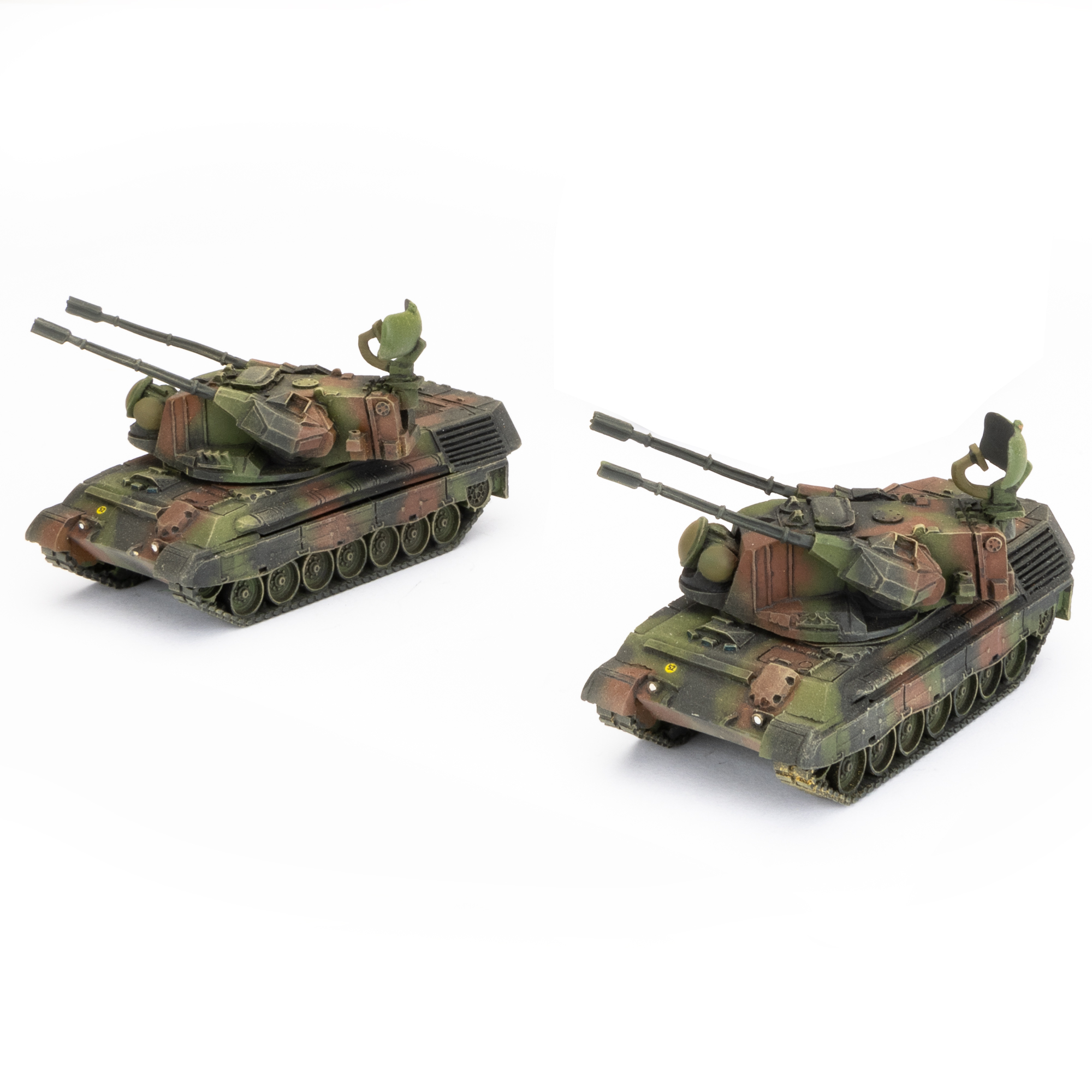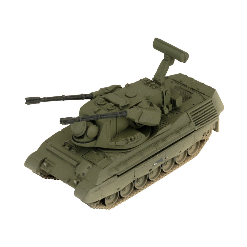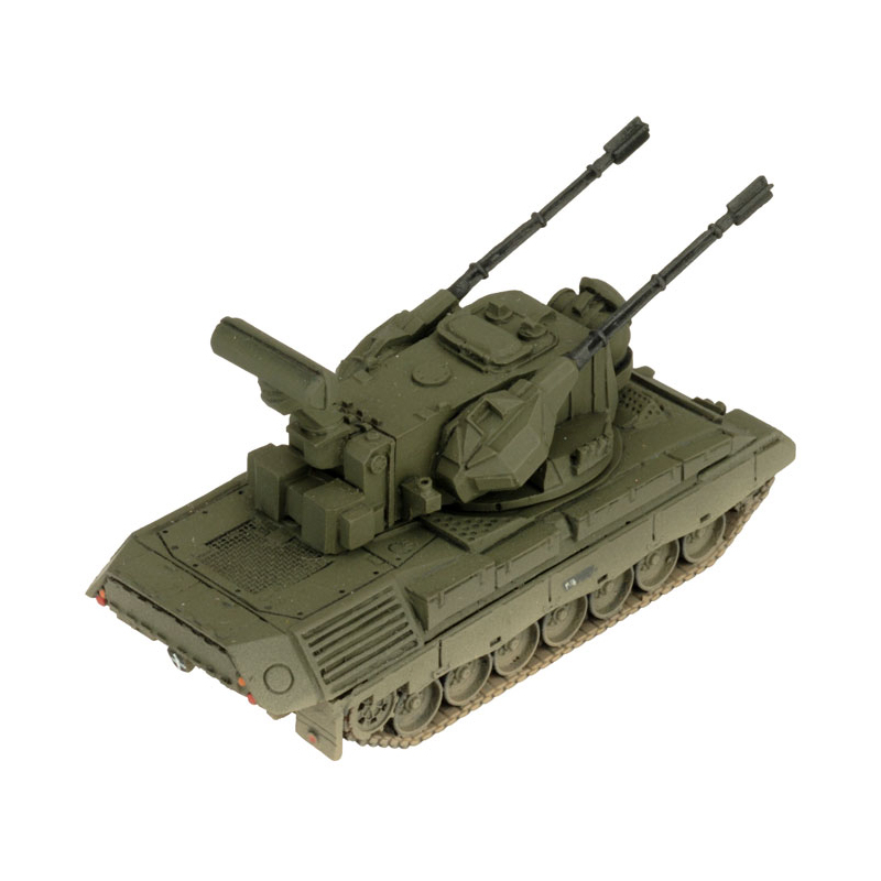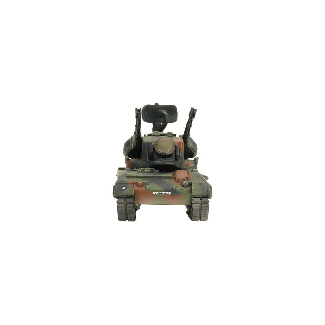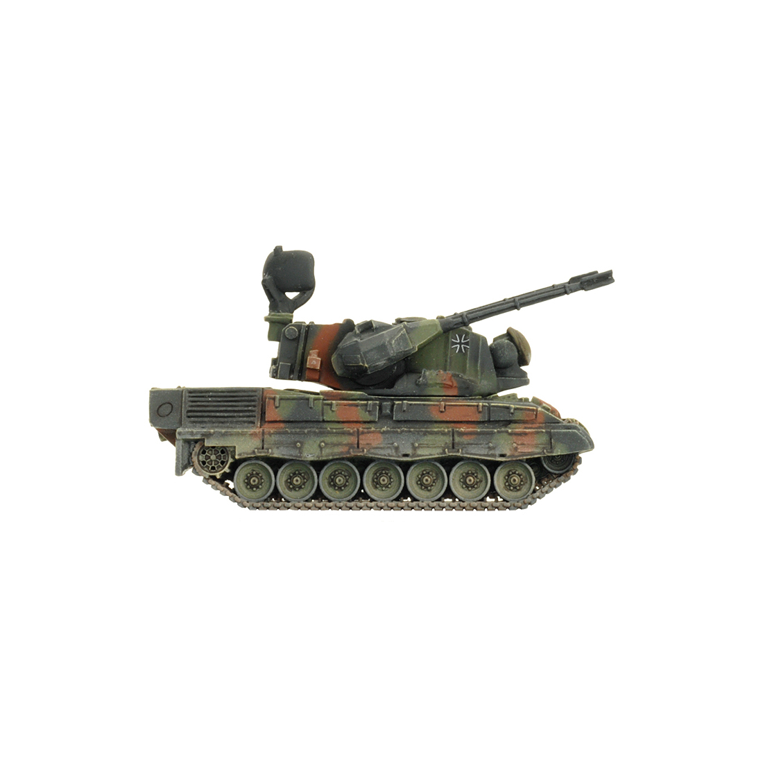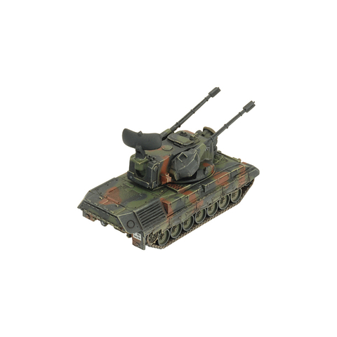 Зенитный танк «Гепард» (или просто «Гепард») — основное зенитное орудие танковых дивизий. Он оснащен сложной радиолокационной системой обнаружения и сопровождения целей. «Гепард» создан на базе корпуса танка «Леопард-1», имеет большую башню с двумя 35-мм автоматическими пушками «Эрликон» и радиолокационными антеннами для слежения и поиска.
