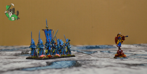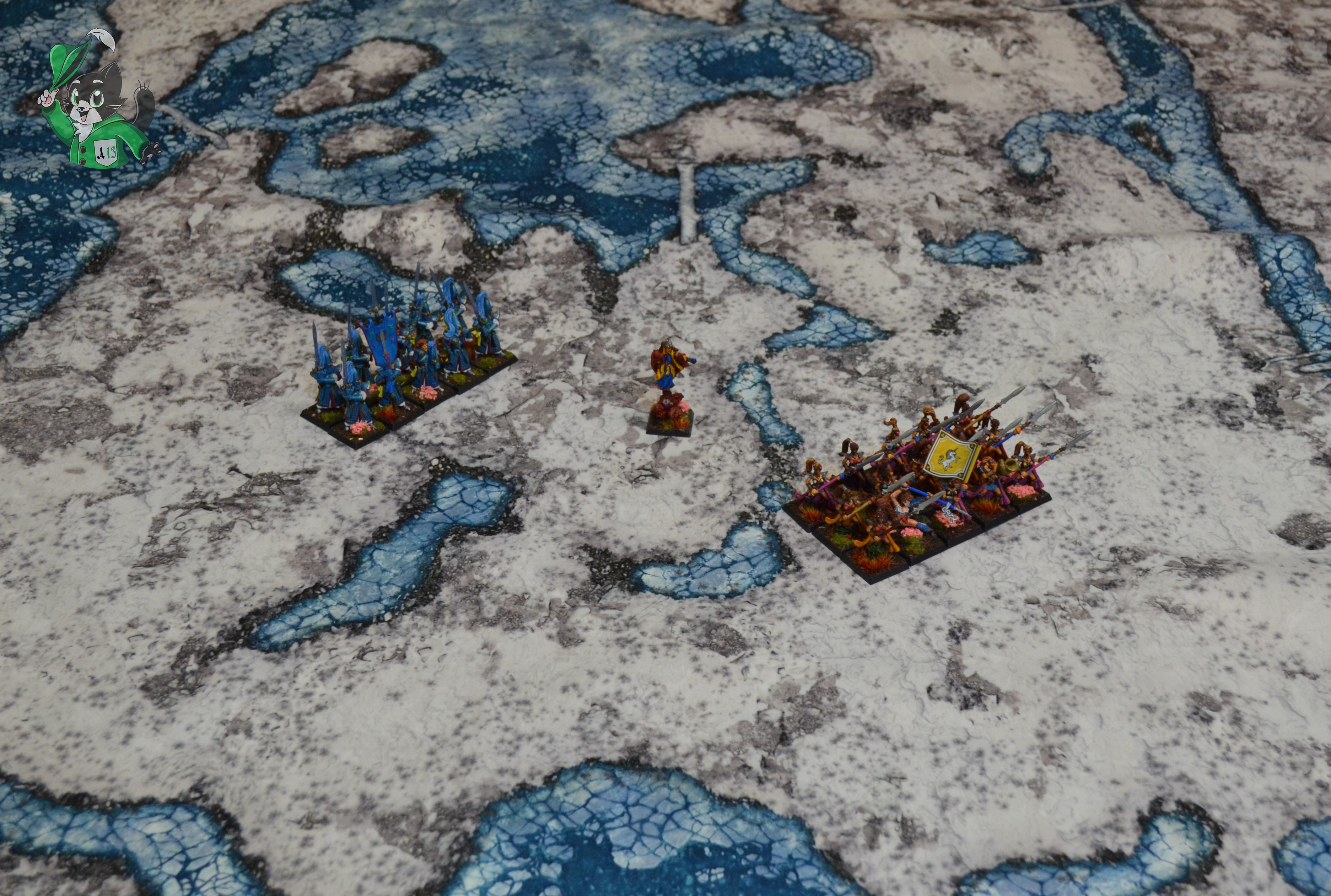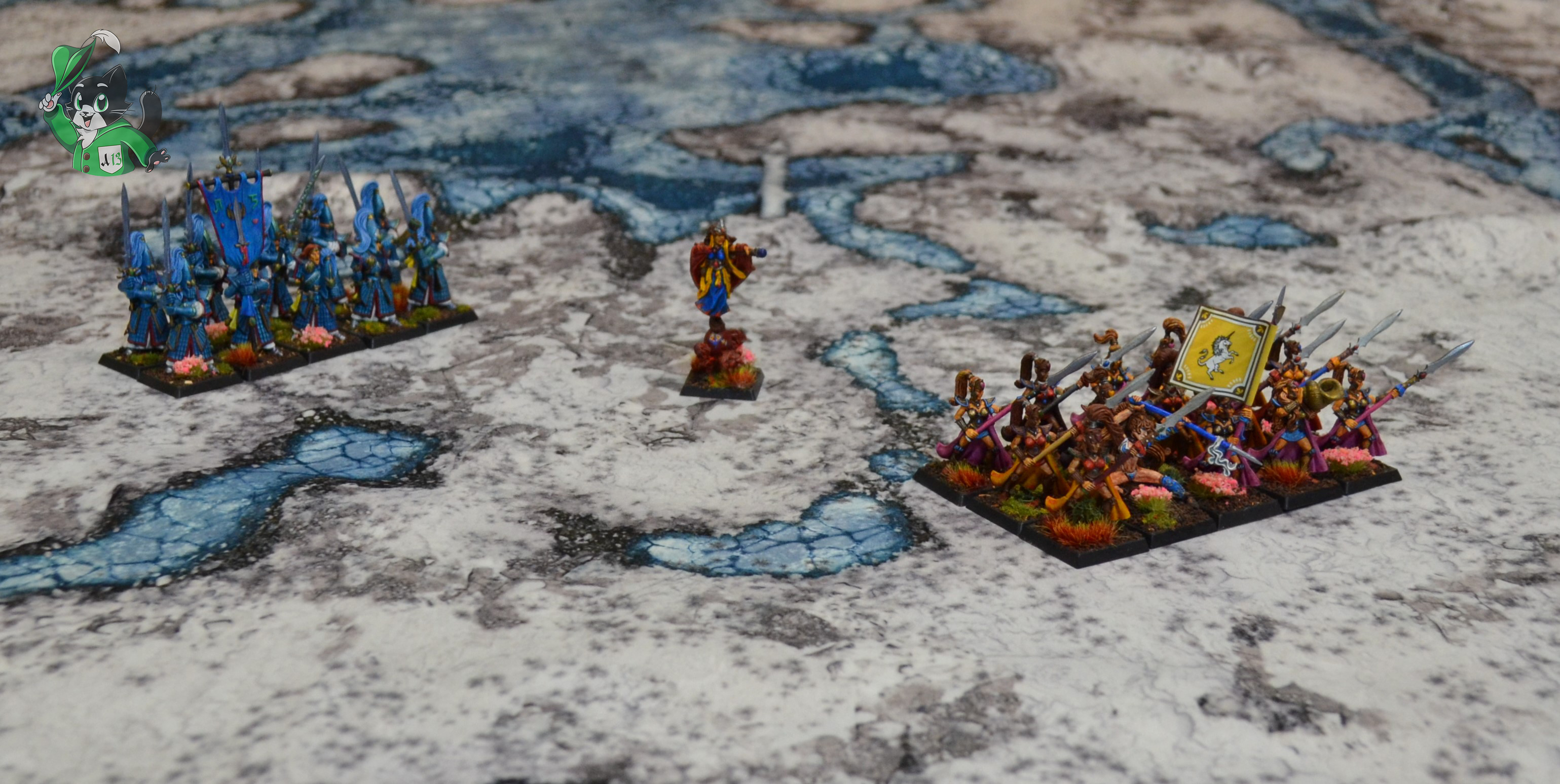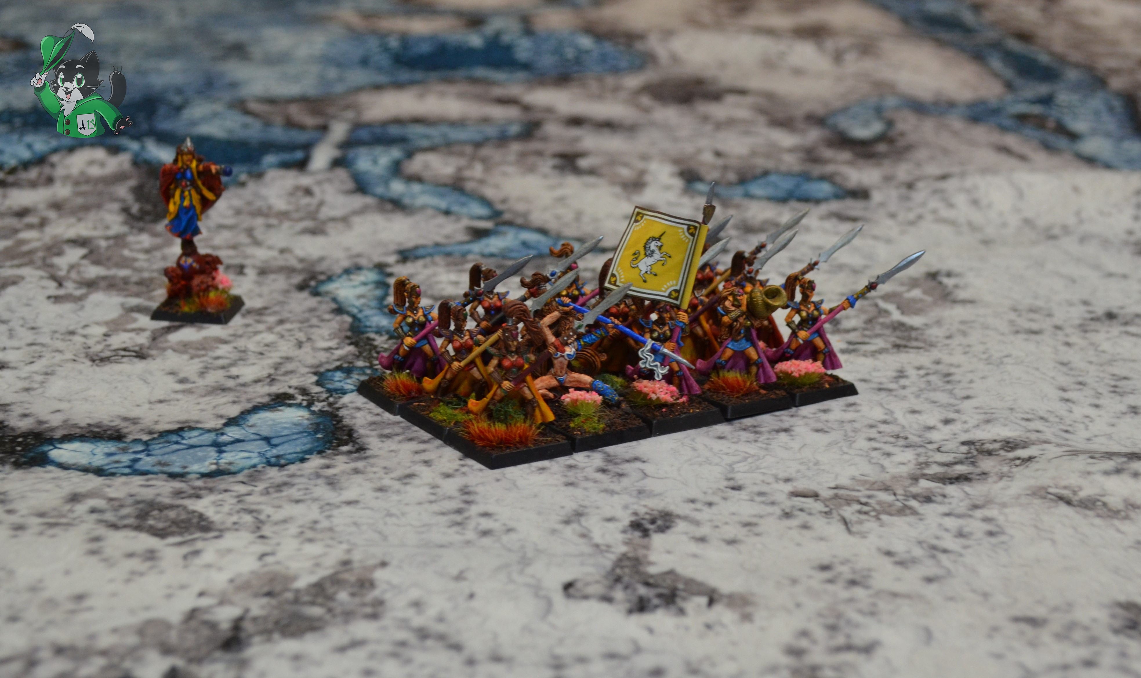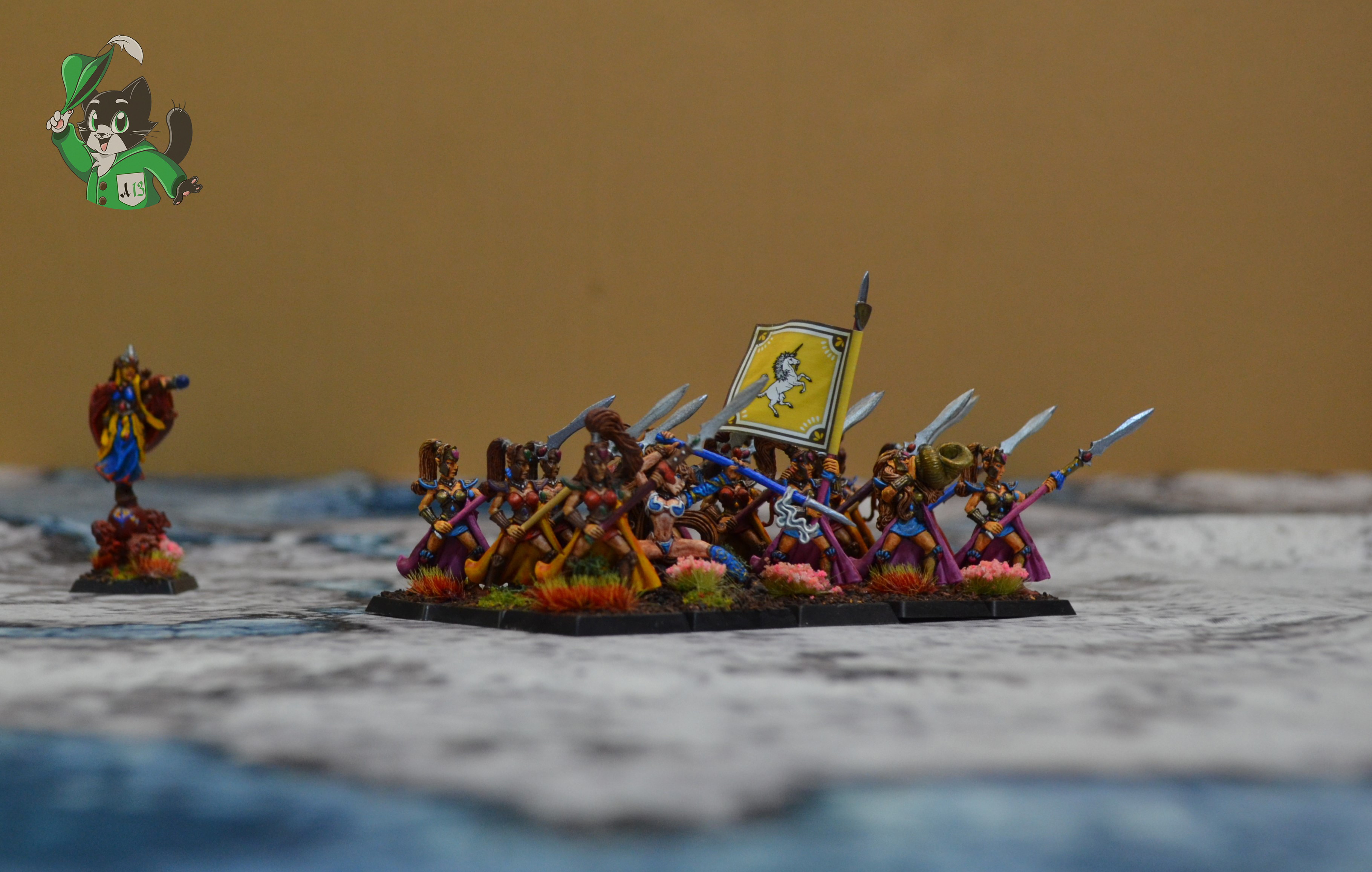 Миниатюры в комплект не входят. Представлены для масштаба. Использованы миниатюры Phoenix от Archon Studios; High Elf Maiden Guard, Swordmasters of Hoeth (8 ред.), High Elf Mage on Elemental Base от GW; миниатюра Taryn, Spearmaiden от Reaper Miniatures из коллекции Дмитрия Шевченко. Художник Дмитрий Шевченко. Знамя с единорогом от фирмы North Star.