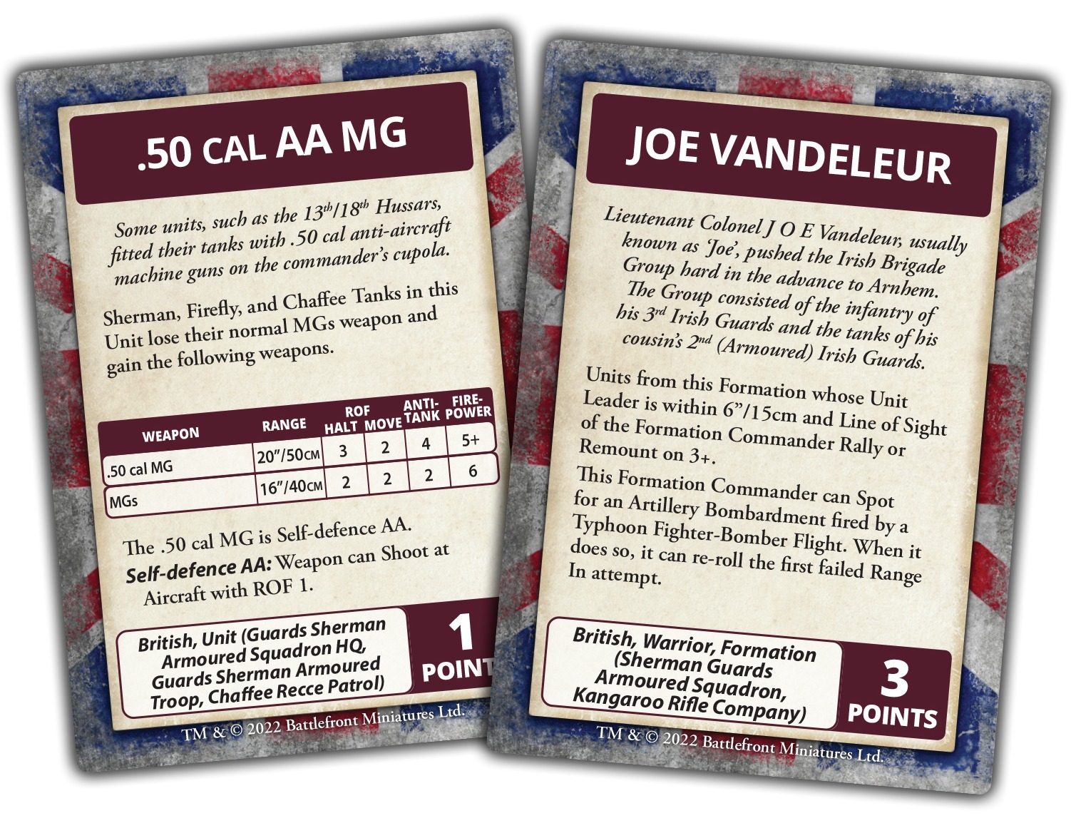 Карты приказов позволяют генералам Flames Of War выставлять на поле боя легендарных воинов, создавать новые типы подразделений, выставлять на поле боя новые типы снаряжения, расширять возможности командира и использовать на поле боя новые тактики и стратегии.