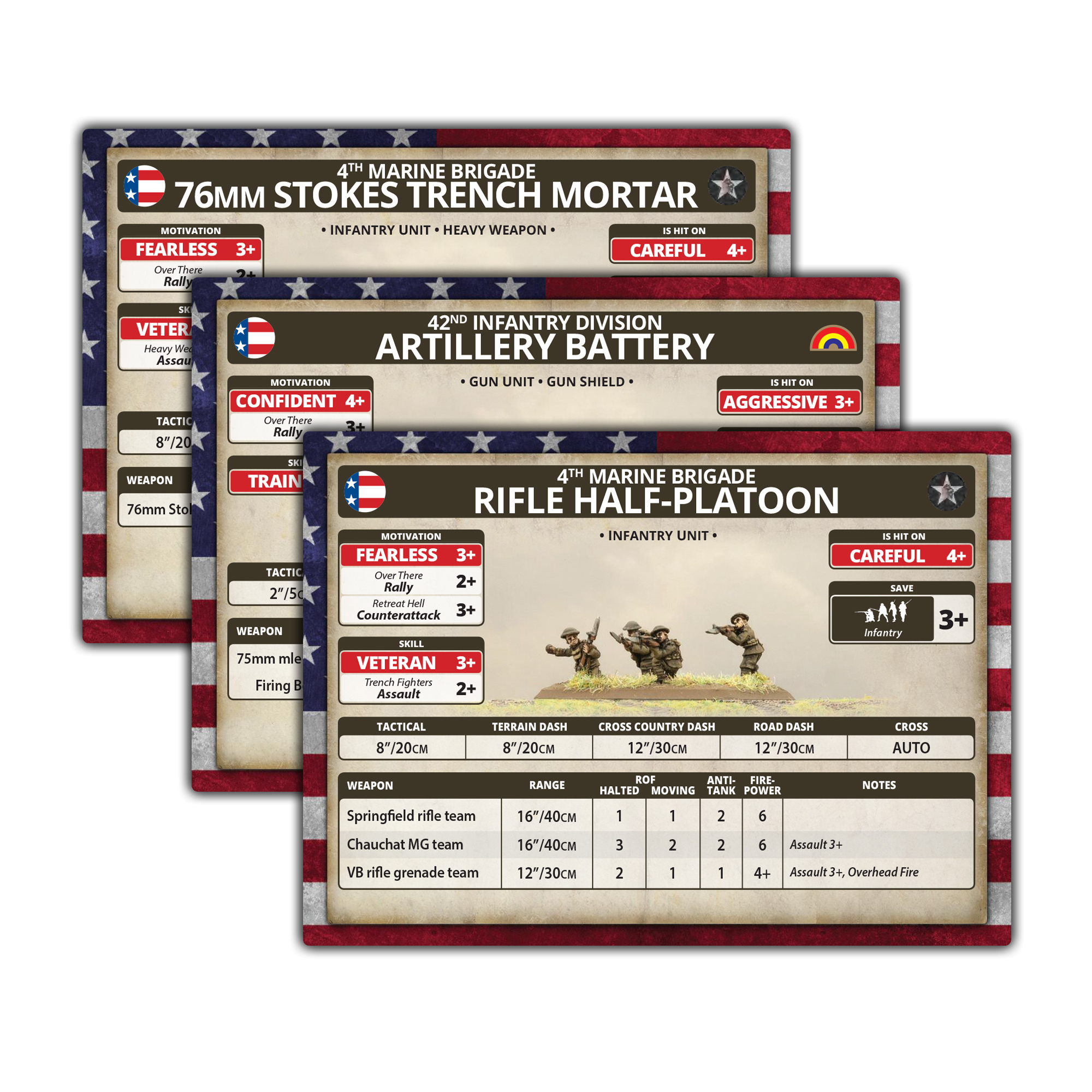 Набор карточек американских подразделений времен Первой мировой войны содержит 75 карточек подразделений.