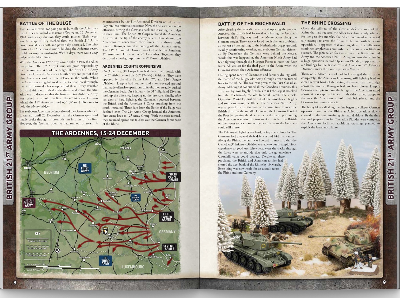 После бурного наступления британские и канадские войска перешли к очистке устья Шельды, чтобы открыть жизненно важный порт снабжения Антверпен, который был открыт для судоходства в ноябре 1944 года. Обеспечив снабжение, они приступили к очистке затопленного западного берега Рейна и сырого Рейхсвальда. Прерванные Арденнским наступлением, британские и канадские наступления уничтожили остатки немецкой армии к западу от Рейна в марте 1945 года. Форсирование Рейна привело к месяцу ожесточённых боёв, в ходе которых британцы захватили порты Северного моря и завершили войну на берегах Балтийского моря.