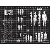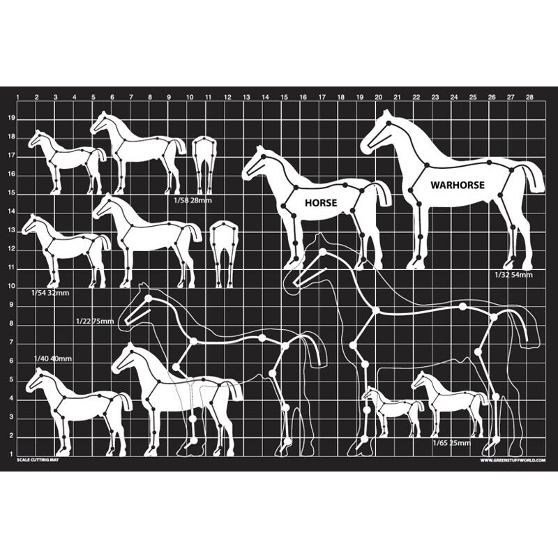 На одной стороне коврика нанесены направляющие линии наиболее распространенных масштабов, что позволит вам создавать каркасы для лепки миниатюр как мужчин, так и женщин. С другой стороны вы найдете те же шкалы и направляющие линии для создания арматуры лошадей и боевых коней.