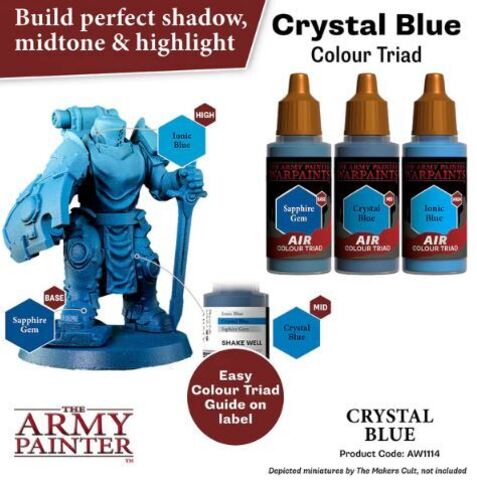 Все краски Warpaints Air предварительно смешаны и готовы к нанесению аэрографом прямо из флакона и изготовлены из ультрафильтрованного яркого пигмента. Ассортимент Warpaints Air был разработан в уникальной и инновационной системе Triad System - каждый соответствующий цвет Warpaints Acrylics имеет соответствующий цвет Base и Highlight. Это делает выделение и зенитную штриховку легкими, а армейскую покраску еще более быстрой и сплоченной. Чтобы упростить задачу, Warpaints Air поставляется с двумя стальными шариками для смешивания.