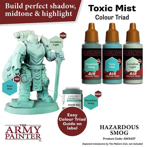 Все краски Warpaints Air предварительно смешаны и готовы к нанесению аэрографом прямо из флакона и изготовлены из ультрафильтрованного яркого пигмента. Ассортимент Warpaints Air был разработан в уникальной и инновационной системе Triad System - каждый соответствующий цвет Warpaints Acrylics имеет соответствующий цвет Base и Highlight. Это делает выделение и зенитную штриховку легкими, а армейскую покраску еще более быстрой и сплоченной. Чтобы упростить задачу, Warpaints Air поставляется с двумя стальными шариками для смешивания.
