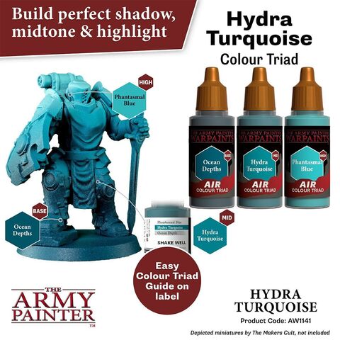 Все краски Warpaints Air предварительно смешаны и готовы к нанесению аэрографом прямо из флакона и изготовлены из ультрафильтрованного яркого пигмента. Ассортимент Warpaints Air был разработан в уникальной и инновационной системе Triad System - каждый соответствующий цвет Warpaints Acrylics имеет соответствующий цвет Base и Highlight. Это делает выделение и зенитную штриховку легкими, а армейскую покраску еще более быстрой и сплоченной. Чтобы упростить задачу, Warpaints Air поставляется с двумя стальными шариками для смешивания.