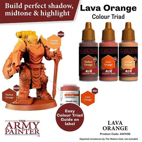 Все краски Warpaints Air предварительно смешаны и готовы к нанесению аэрографом прямо из флакона и изготовлены из ультрафильтрованного яркого пигмента. Ассортимент Warpaints Air был разработан в уникальной и инновационной системе Triad System - каждый соответствующий цвет Warpaints Acrylics имеет соответствующий цвет Base и Highlight. Это делает выделение и зенитную штриховку легкими, а армейскую покраску еще более быстрой и сплоченной. Чтобы упростить задачу, Warpaints Air поставляется с двумя стальными шариками для смешивания .