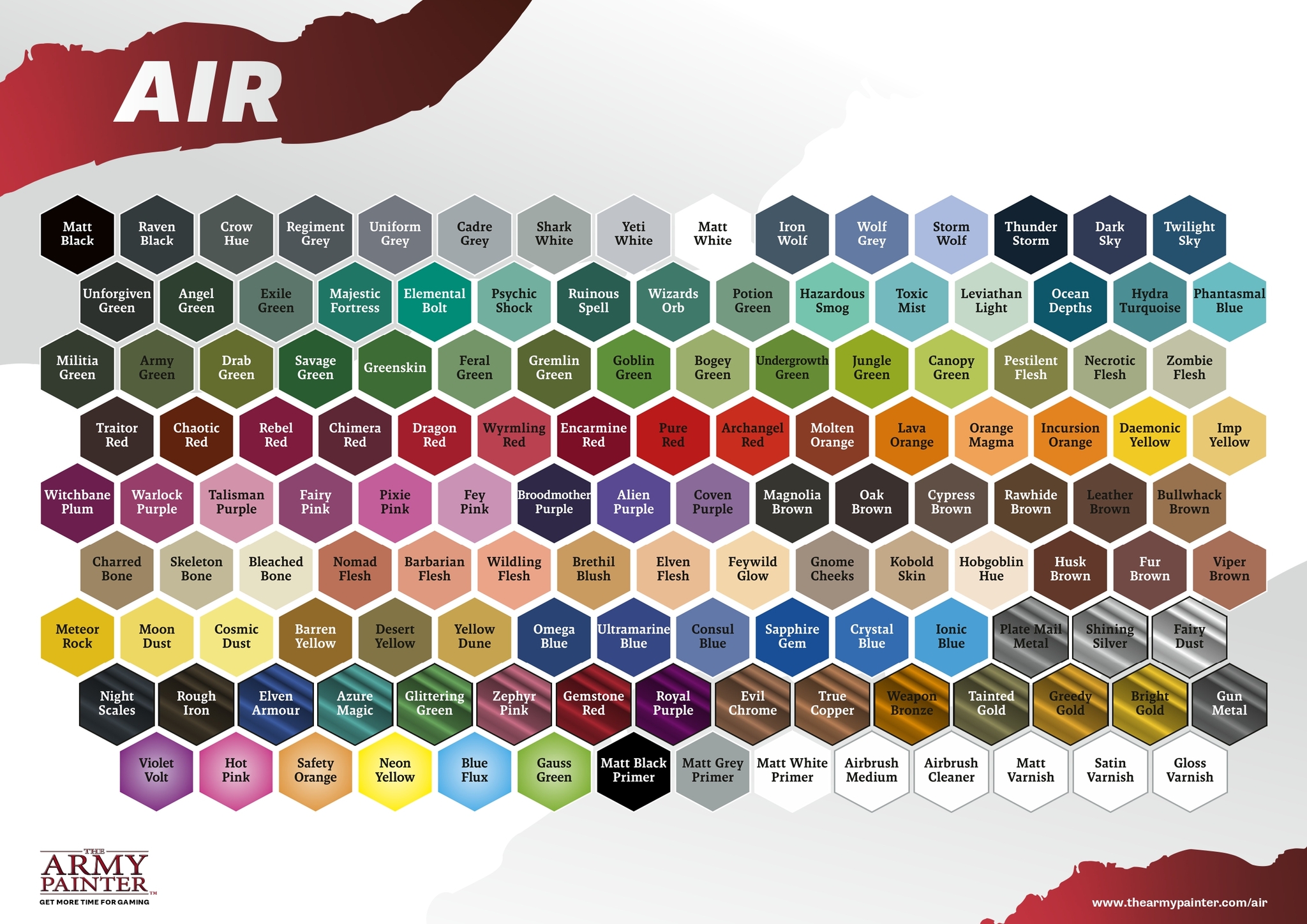 Warpaints™ Air — это высококачественные акриловые краски с превосходной консистенцией и укрывистостью, специально разработанные для аэрографа. Некоторые цвета, например, синие оттенки, будут иметь лучшую укрывистость, чем желтые оттенки. Потому что пигменты ведут себя по-разному от цвета к цвету, как и Warpaints™. Мы постоянно работаем над тем, чтобы наша продукция соответствовала высоким стандартам, предъявляемым художниками-любителями по всему миру, и чтобы мы серьезно относились к сохранению консистенции и качества.