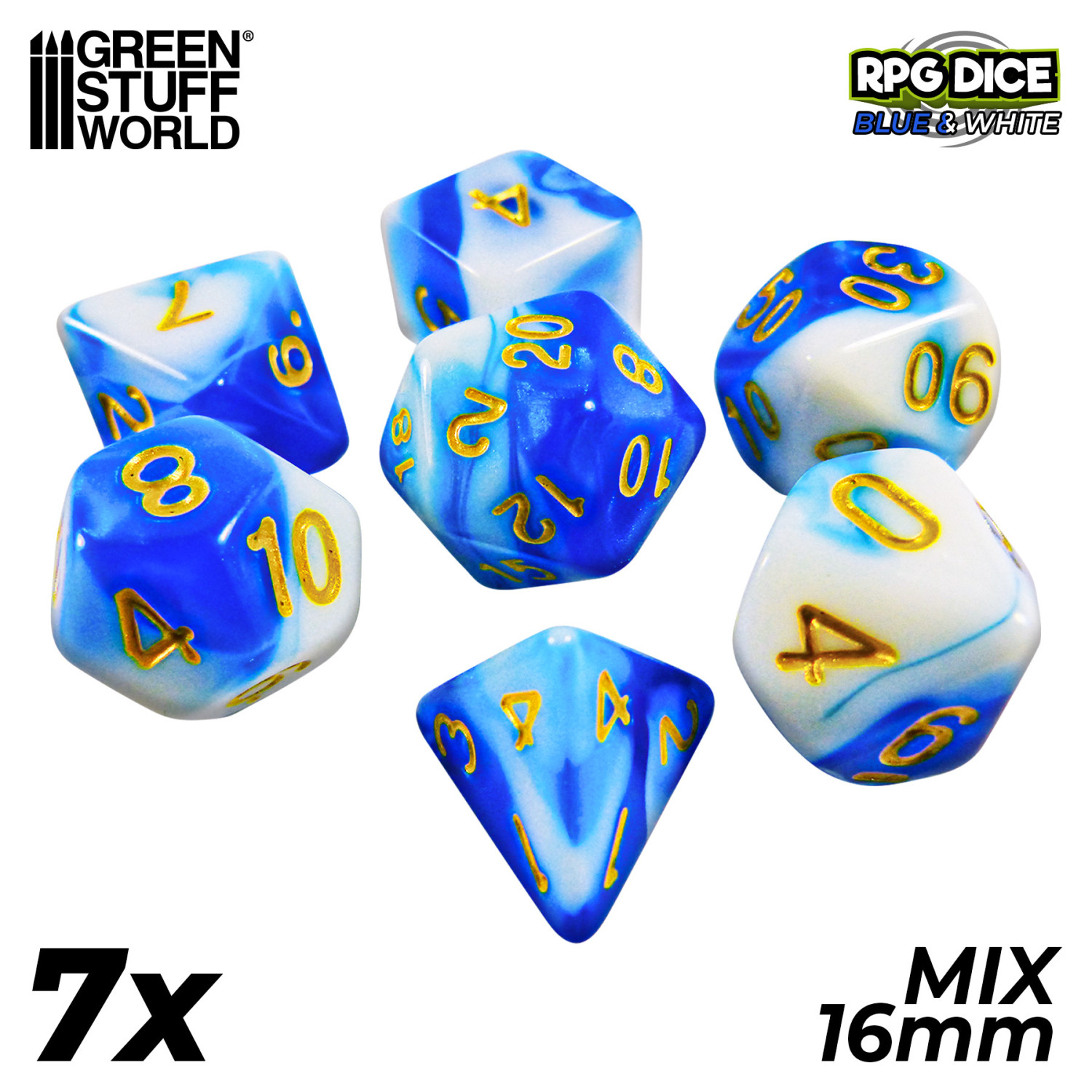 Кубы 7x Mix 16mm Dice - Blue White