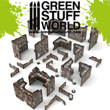 Этот набор включает в себя все элементы ландшафта, необходимые для создания полного набора стандартных турнирных макетов : все необходимые U-образные здания, 8 низких стен и 4 небольших L-образных руины — две из них соберите в виде L-образных конструкций, обращенных влево, а две — вправо (после склеивания их ориентация фиксируется). Большие L-образные руины, с другой стороны, обычно склеиваются в одном положении и могут использоваться как в виде L-образной конструкции, обращенной влево, так и вправо, просто повернув всю деталь на 180° при размещении на столе. Для максимальной гибкости и для того, чтобы всегда иметь в наличии все возможные комбинации макетов, мы рекомендуем приобрести 6 дополнительных больших L-образных руин и собрать их в противоположной ориентации по сравнению с первыми 6.