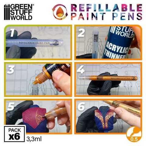 Эти маркеры хорошо работают на различных поверхностях в зависимости от типа краски и её разбавления: бумаге, пластике, стекле, дереве и других, что делает их универсальными для различных задач, таких как рисование комиксов или фигурок в стиле манга. Для достижения наилучших результатов рекомендуется использовать их с акриловыми чернилами или хромированными красками, которые обеспечивают яркое, непрозрачное и ровное покрытие и, как правило, благодаря своей текучести не требуют предварительной подготовки. Их прочная конструкция обеспечивает стабильную работу, а эргономичный дизайн обеспечивает комфортную работу при длительном использовании.