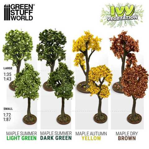 Листы для озеленения Ivy Foliage от Green Stuff World — это специализированные листы с листьями разных типов, цветов и размеров, имитирующие внешний вид листьев виноградной лозы и листву дерева в миниатюрном масштабе.