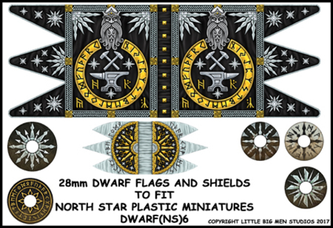 Декали с флагом и щитами от Little Big Men Studios. Разработан для пластиковых наборов Oathmark: Battles of the Lost Age.