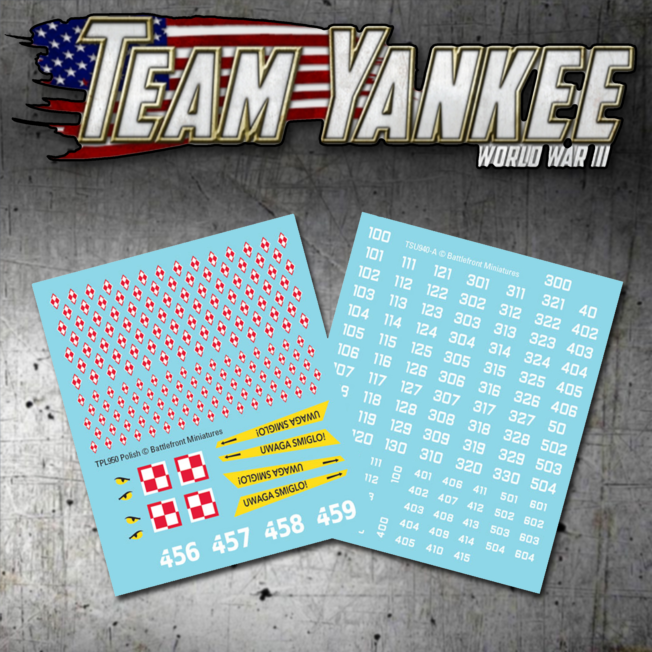 Набор польских декалей содержит все необходимые обозначения для превращения советской техники в польскую. Каждый набор включает в себя достаточно обозначений для более чем 100 машин и 4 вертолетов Ми-24 «Хинд».