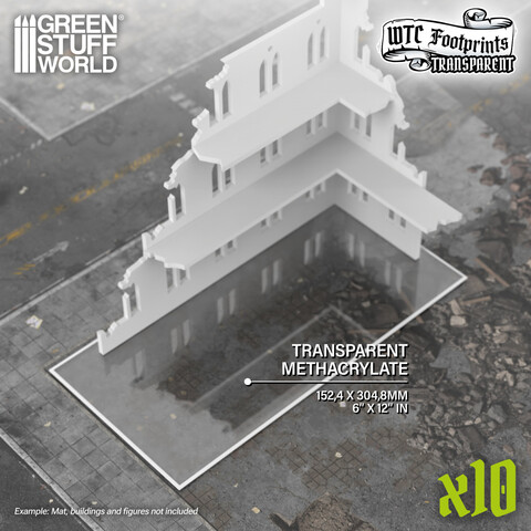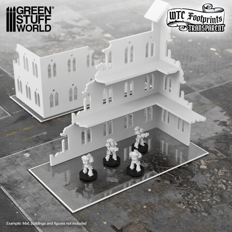 Прозрачные подложки из стекловолокна толщиной 1 мм от Green Stuff World точно обозначают контуры зданий и руин для игр, совместимых с Warhammer 40,000® и мероприятиями, посвященными Всемирному торговому центру. Изготовленные из полностью прозрачного, гибкого и небьющегося стекловолокна, они сохраняют эстетику вашего игрового мата и не создают острых краев, о которые могут споткнуться ваши модели.