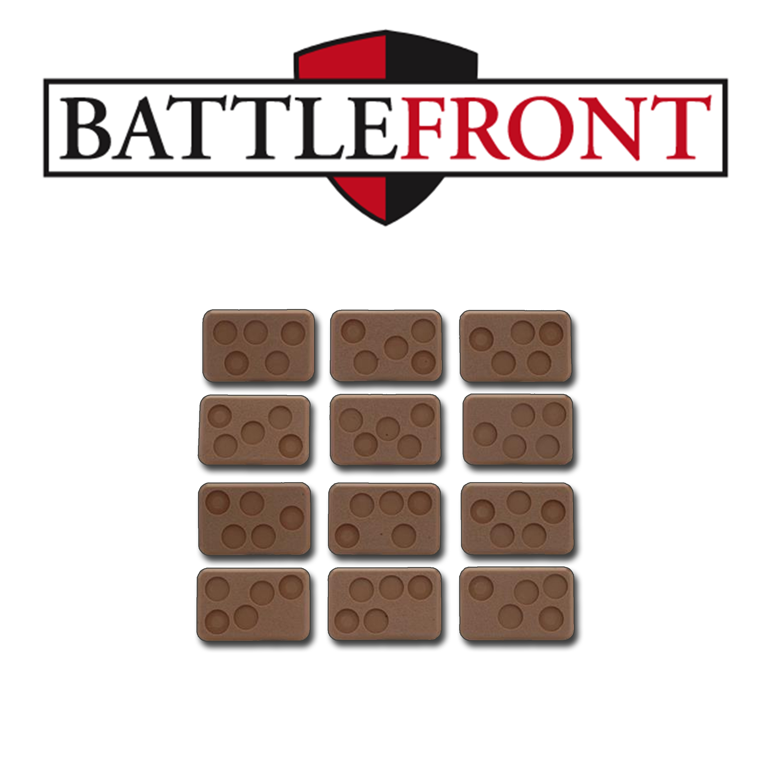 Набор подставок среднего коричневого цвета с 5 углублёнными отверстиями для фигурок пехоты и артиллерийских расчётов.