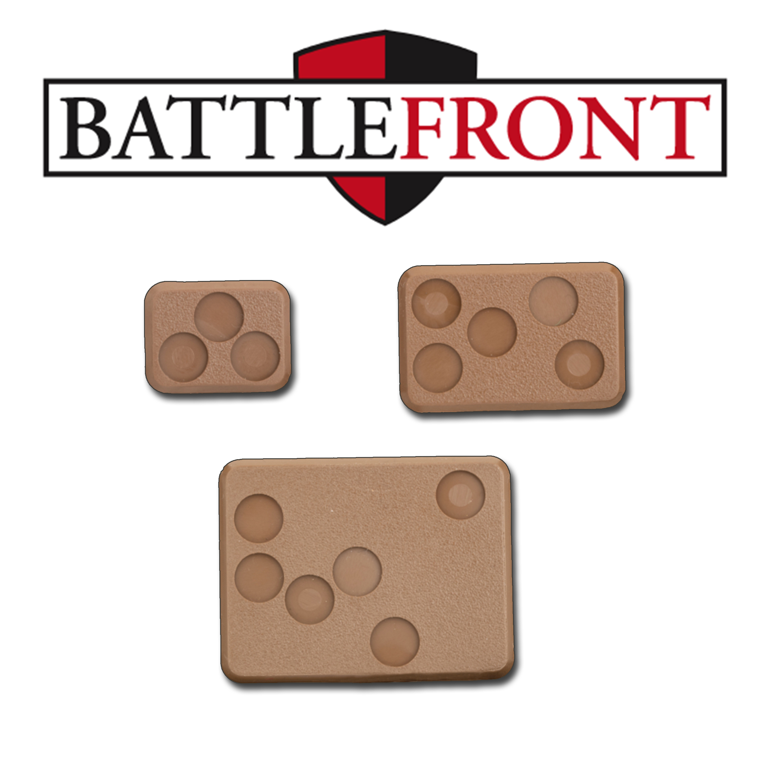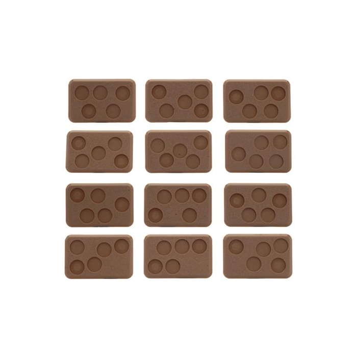 Смесь коричневых подставок с углублёнными отверстиями для фигурок пехоты и артиллерийских расчётов.