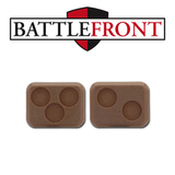 Набор смешанных маленьких коричневых подставок с 2 или 3 углублёнными отверстиями для фигурок, например, пехоты.