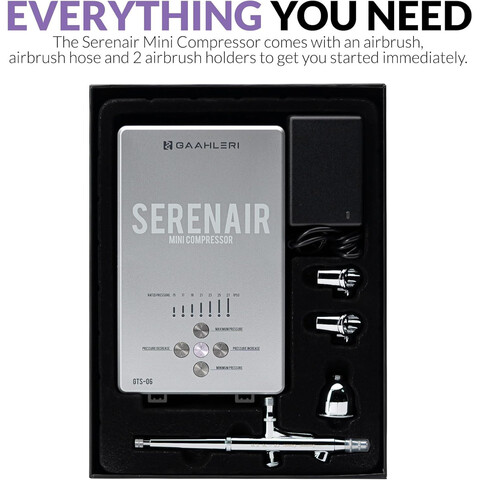 Мини-компрессор Ambition Series GTS-06 Serenair от Gaahleri — это полный и надежный комплект для аэрографии, разработанный для любителей, художников и художников-миниатюристов, которым нужно универсальное решение для своих творческих проектов. Компактный, но мощный, этот набор включает в себя мини-компрессор, высококачественный аэрограф, воздушный шланг и держатели — все, что вам нужно, чтобы начать аэрографию сразу после распаковки. Его элегантный и портативный дизайн делает его идеальным для начинающих, изучающих мир аэрографии, или для опытных художников, которым нужна мобильная установка, обеспечивающая стабильную работу в любом месте.