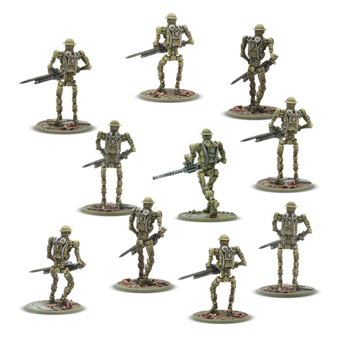 Скромного британского пехотинца все чаще вытесняют автоматизированные пехотинцы. Эти непоколебимые, управляемые кодом механические солдаты могут медленно адаптироваться на поле боя, но совершенно неумолимы в бою и решительны в обороне.
