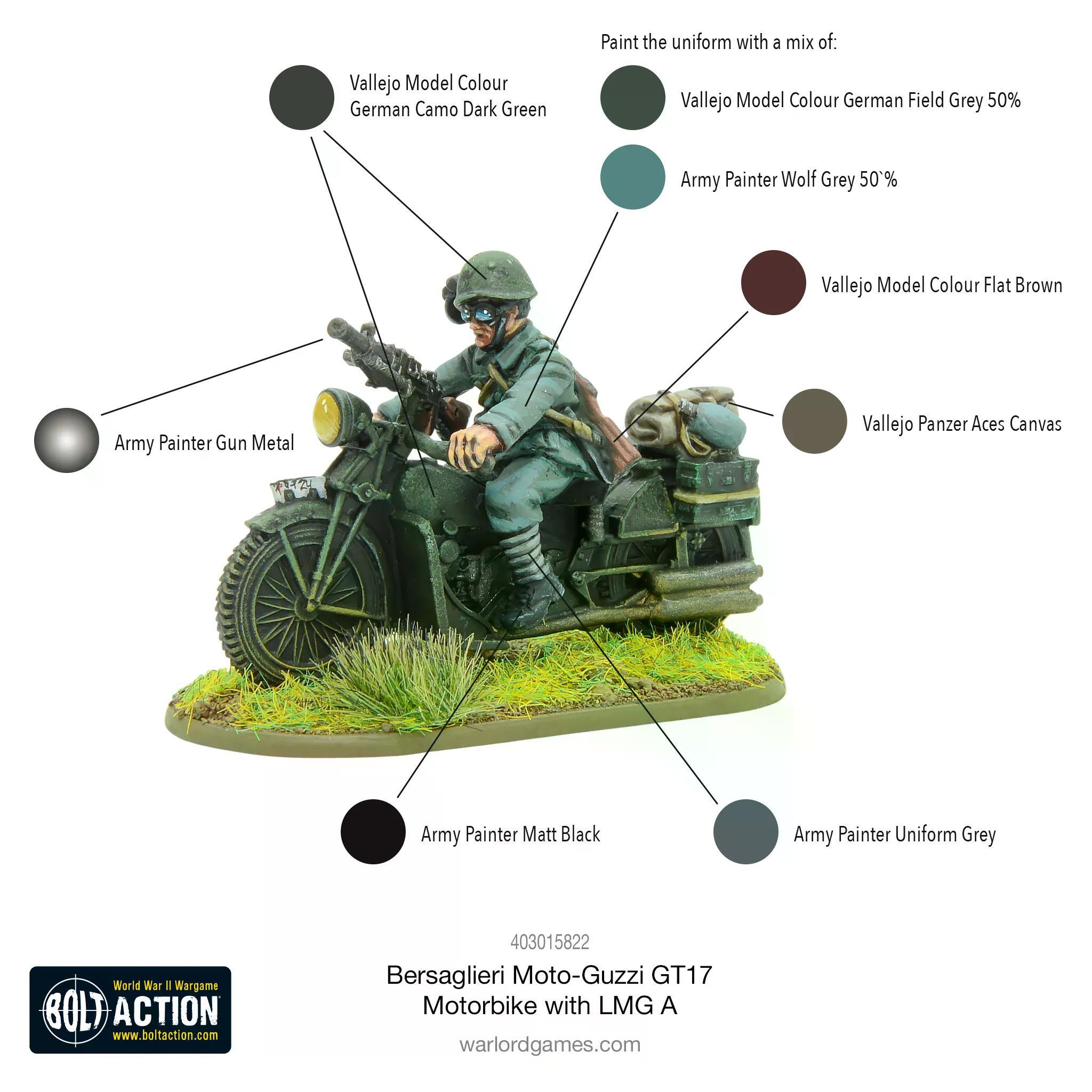 Берсальеры Второй мировой войны передвигались не только пешком, как их коллеги времён Первой мировой войны, а были оснащены грузовиками и мотоциклами. В каждом из двенадцати полков берсальеров был один мотоциклетный батальон. Шесть из этих полков активно служили в Африке с 1940 по 1943 год, одержав множество побед. Их самая известная победа была одержана во время совместной кампании стран Оси против 1-й бронетанковой дивизии США, где они сыграли ключевую роль в захвате перевала Кассерин в Тунисе.