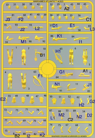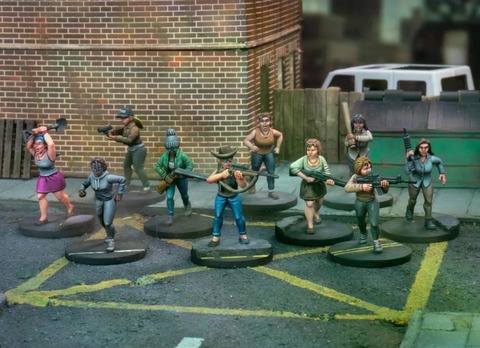 Этот набор из жёсткого пластика содержит достаточно деталей для сборки 24 фигурок диаметром 28 мм. В набор входят шесть уникальных тел, достаточно рук, чтобы заставить их всех бежать, если вы захотите, и огромный выбор оружия. Среди оружия: лопаты, бейсбольные биты, мачете, двуствольные ружья, полуавтоматические ружья, помповые ружья, AR-15, полуавтоматические пистолеты и револьверы, «Узи» и охотничьи/снайперские винтовки. И, наконец, 21 уникальная голова — всего в коробке 84 головы!