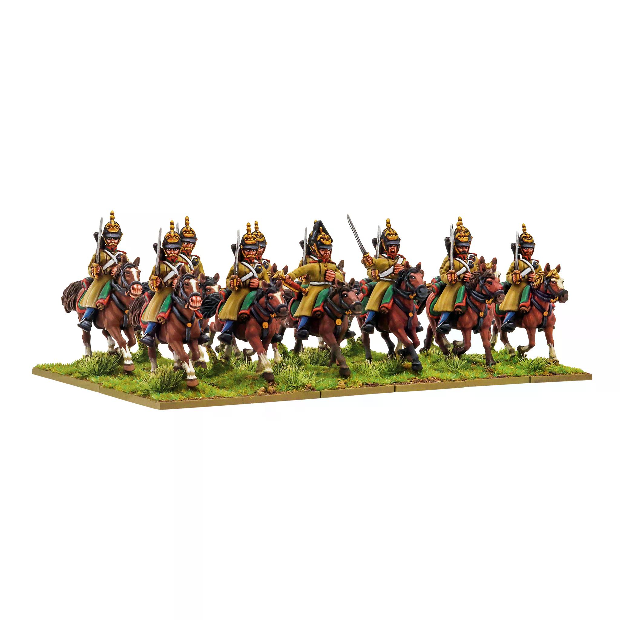 Русская кавалерия была крупнейшей в Европе, насчитывая более шестидесяти полков, объединенных в двадцать кавалерийских дивизий. Легкая кавалерия состояла из гусаров и уланов. Как и в случае с пехотой, подготовка кавалерии заключалась в отработке маневров и действий, предназначенных для плаца, с минимальным тактическим применением.