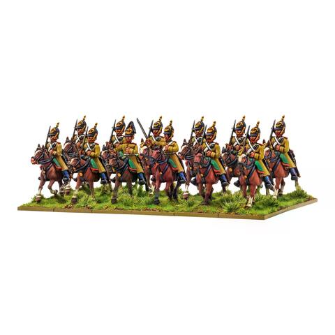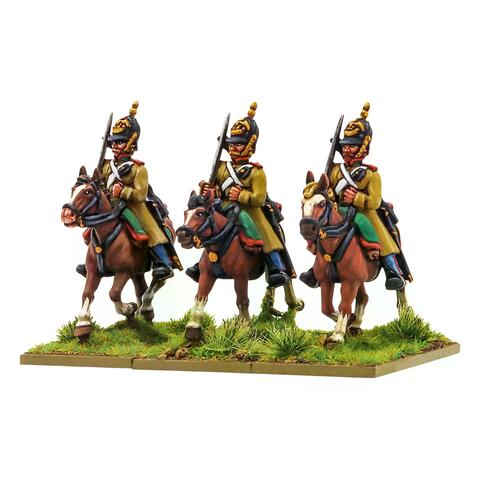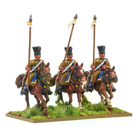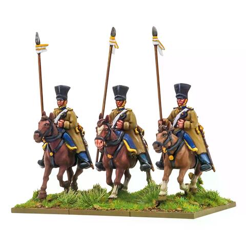 Русские уланы (также известные как уланы в прусской моде) носили форму в польском стиле: высокие четырехконечные чепцы и шинели контрастировали с ярко одетыми британскими противниками. В походе их чепцы обычно покрывали непромокаемой тканью для защиты от непогоды.