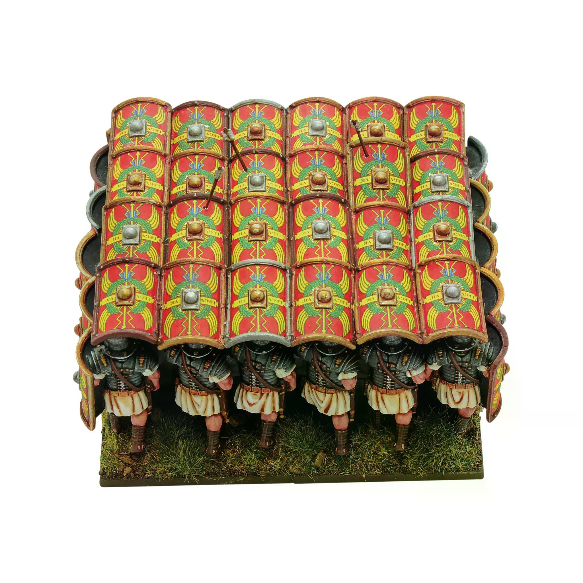 Раздался свисток, прозвучали команды, и легионеры построились в «черепаху» — легендарное построение, в котором все войска защищались взаимосвязанной «панцирем» из щитов-скутумов, что позволяло им выдерживать попадания снарядов, прежде чем двинуться в атаку!