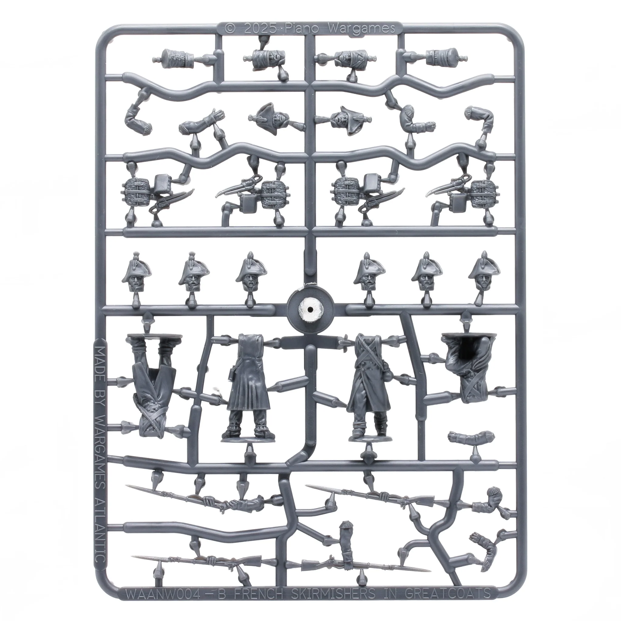 С помощью этого набора вы можете собрать целый батальон французской наполеоновской пехоты, включая 4 стрелков и командира. От линейной пехоты до легкой пехоты или молодой гвардии — вы можете собрать эти фигурки различными способами.