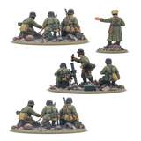 Пара установленных на треногах средних пулеметов MG 34 изрыгают огонь и свинец во врага, в то время как расчет 81-мм среднего миномета обрушивает на них разрушительный взрыв. Их возглавляет командир взвода, жизненно важный как на столе, так и в армейском списке! Тяжелое вооружение вперед — открыть огонь!