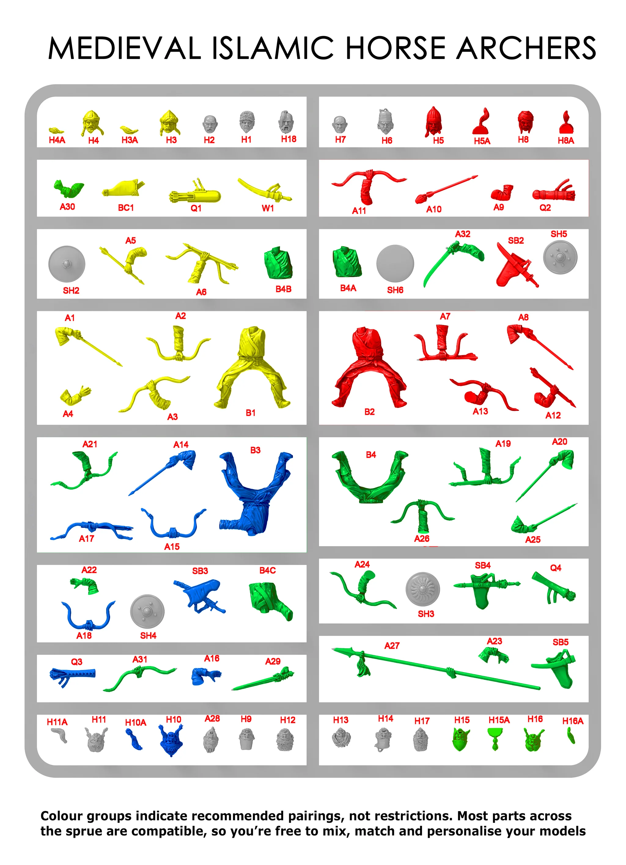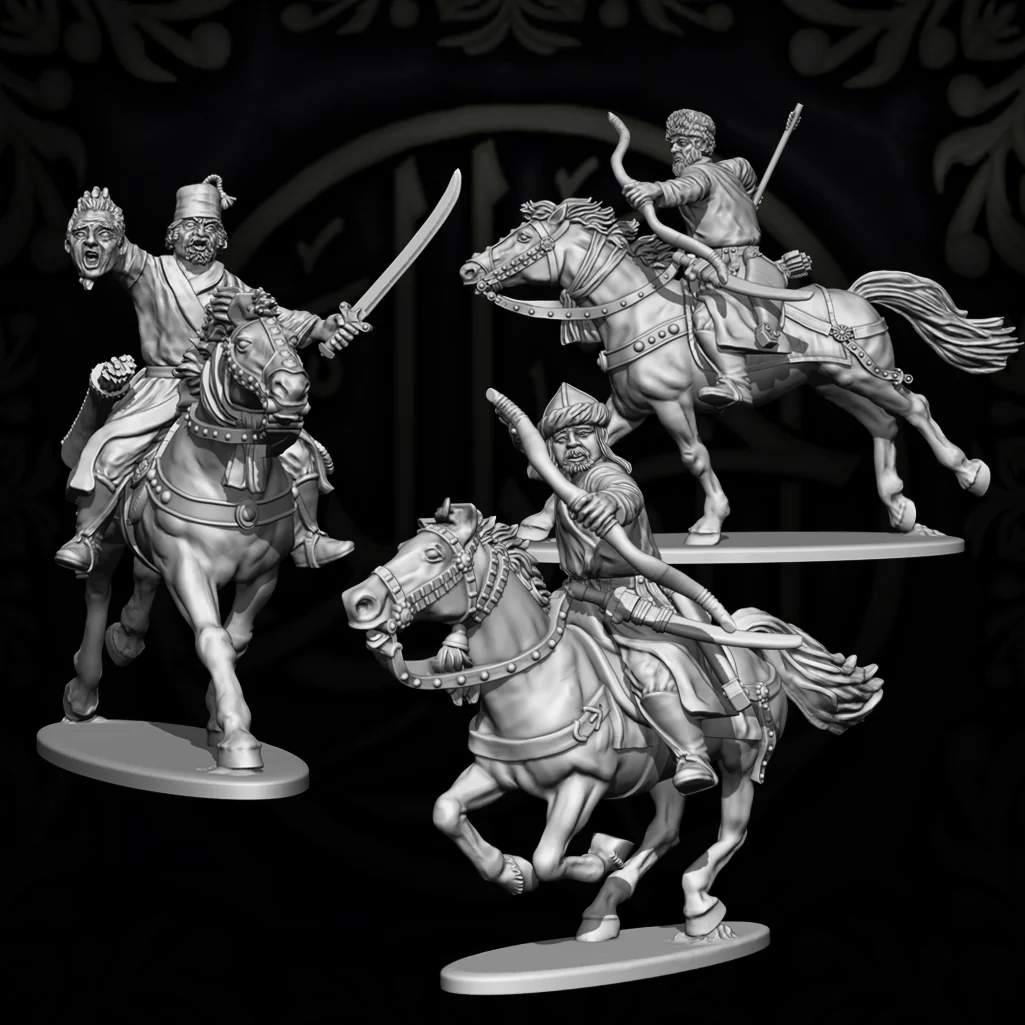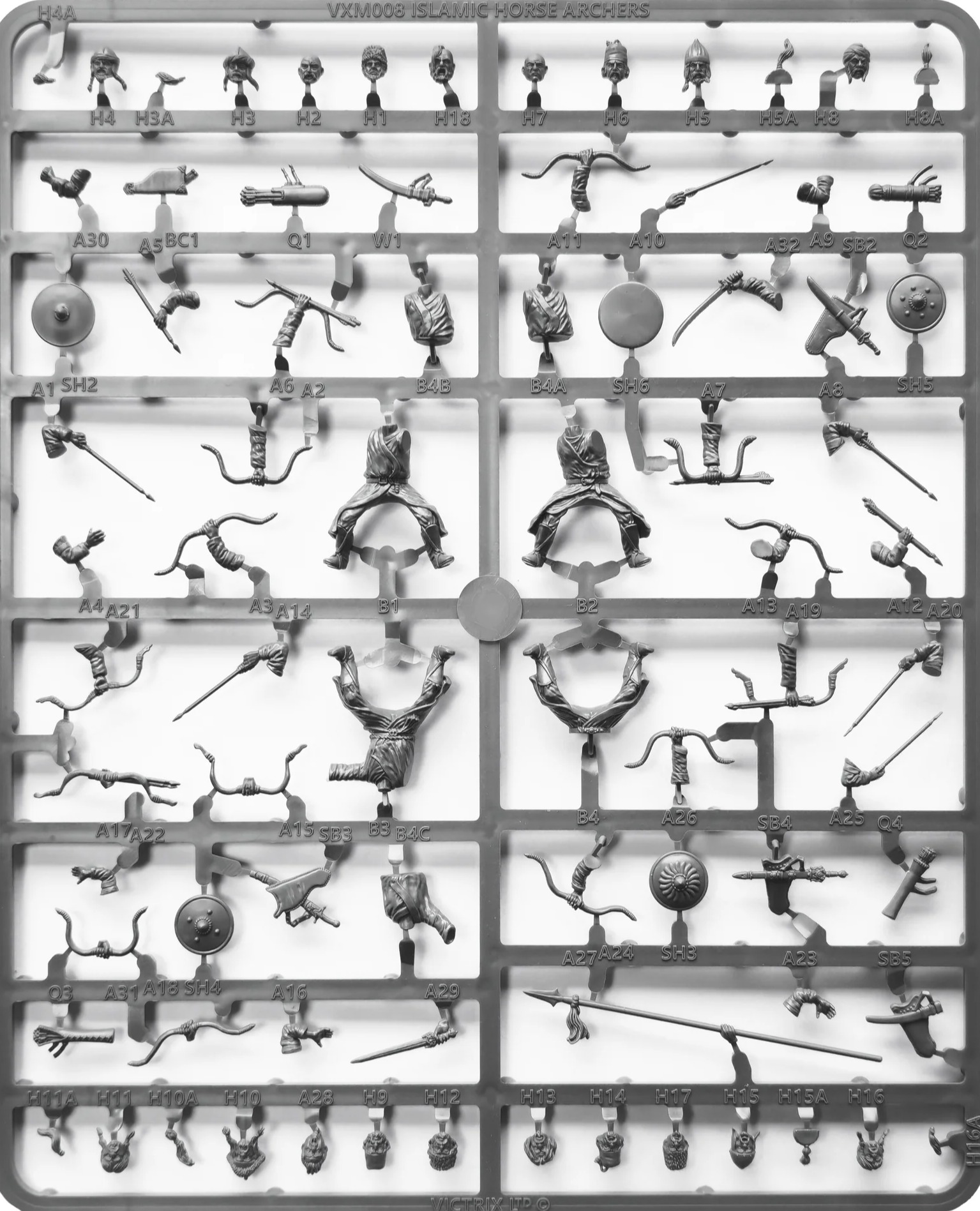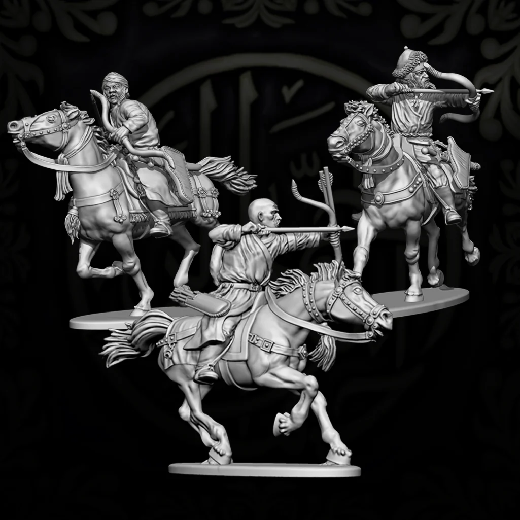 Этот пластиковый набор изображает конных лучников Сельджуков и Туркмен, предлагая широкий выбор вариантов голов, отражающих многообразие воинов со всего исламского мира. Туркменские племена в огромном количестве сражались в качестве вспомогательных войск в составе Сельджуков и других исламских сил, славясь своим мастерством конной стрельбы из лука и отточенной тактикой ведения боя.