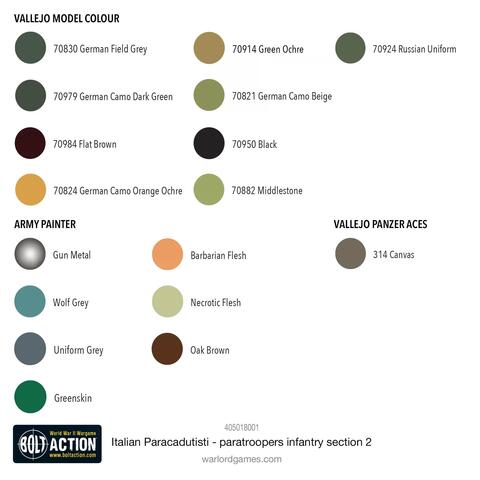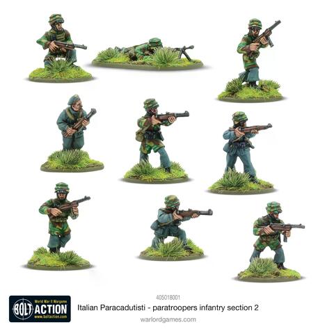 Примечание: Это вторая из двух секций пехоты-десантника Paracadutisti. Каждая содержит уникальные скульптуры, поэтому их можно комбинировать, чтобы придать вашей армии больше разнообразия поз. Первую секцию можно найти здесь.