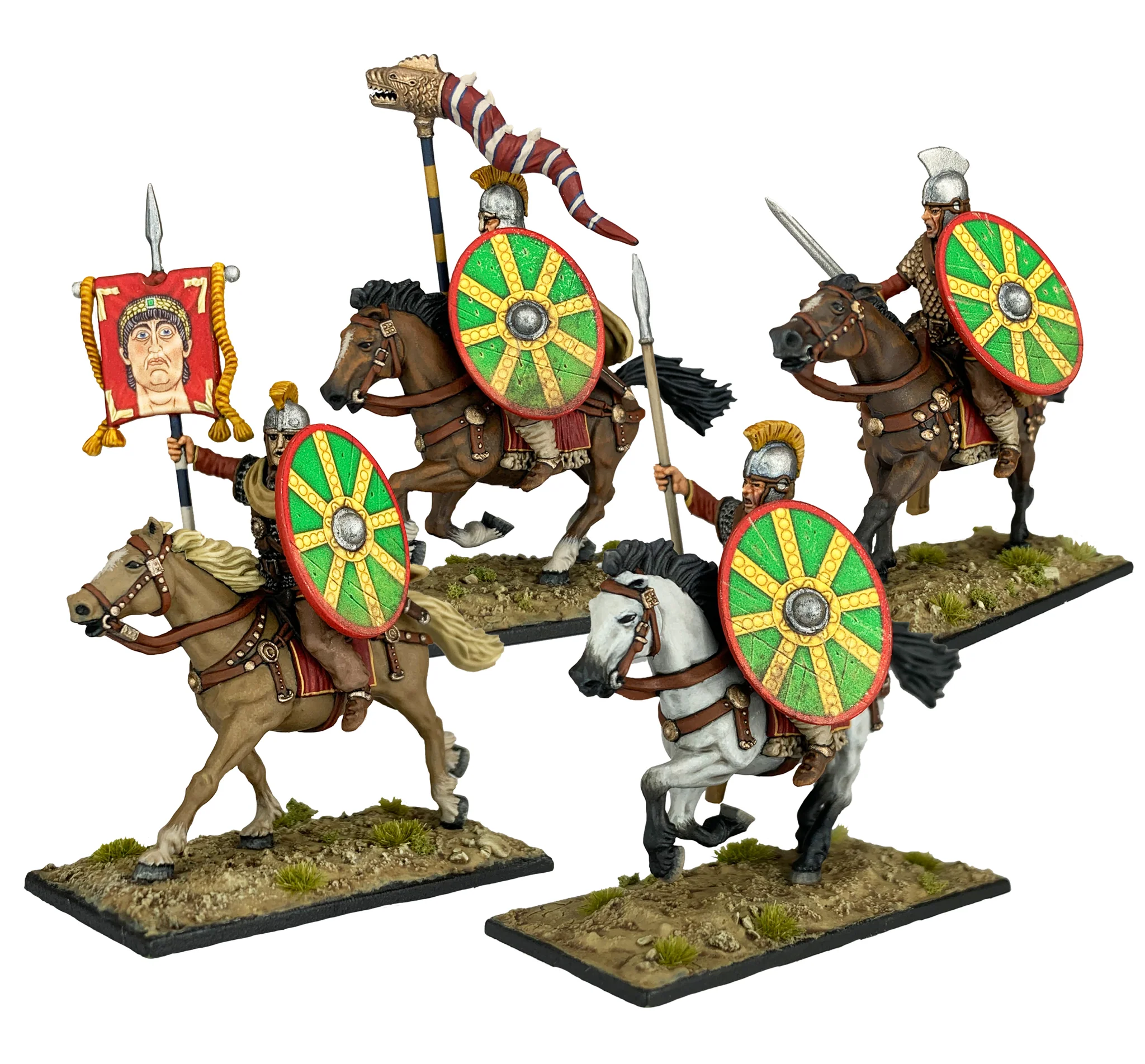 Этот отряд объединяет всю мощь позднеримской армии, сочетая бронированную и небронированную пехоту, командиров, лучников и тяжелую кавалерию в единую, универсальную силу. Представляя поздних римлян в бурные IV–V века, эти фигуры изображают легионы и их союзников, противостоявших вторжениям варваров, враждующим военачальникам и меняющейся власти рушащейся империи.