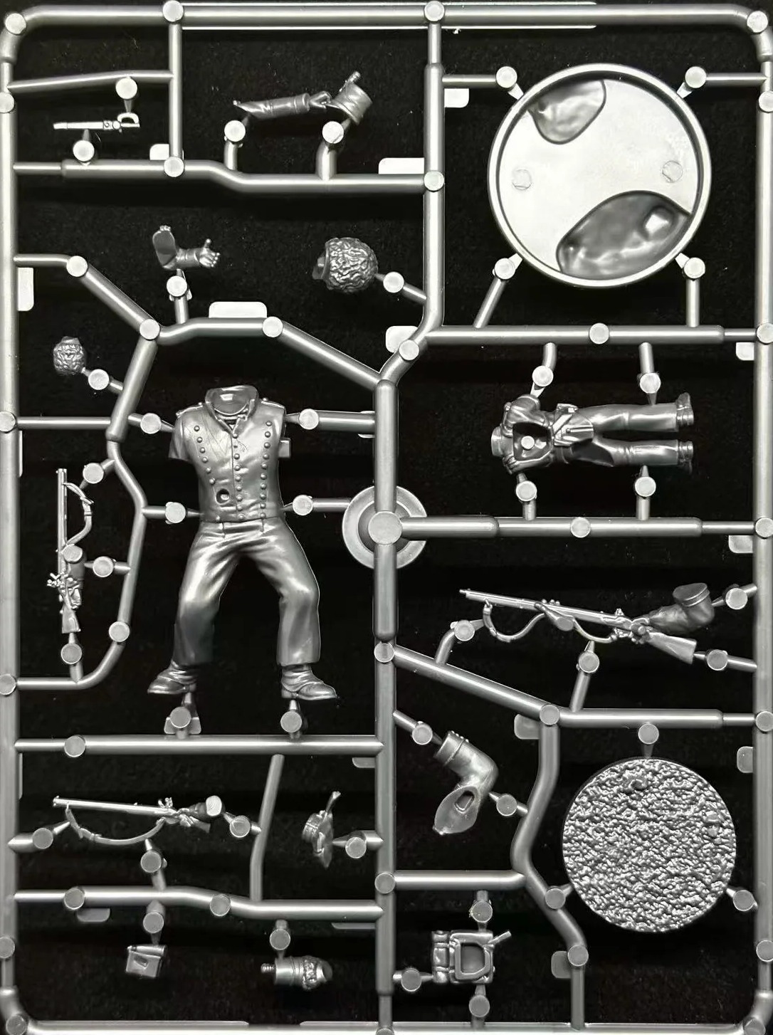 Этот набор из твердого пластика включает в себя одну модель высотой 54 мм с декоративной подставкой и версию высотой 28 мм, которую можно собрать двумя способами, с текстурированной круглой подставкой диаметром 25 мм.
