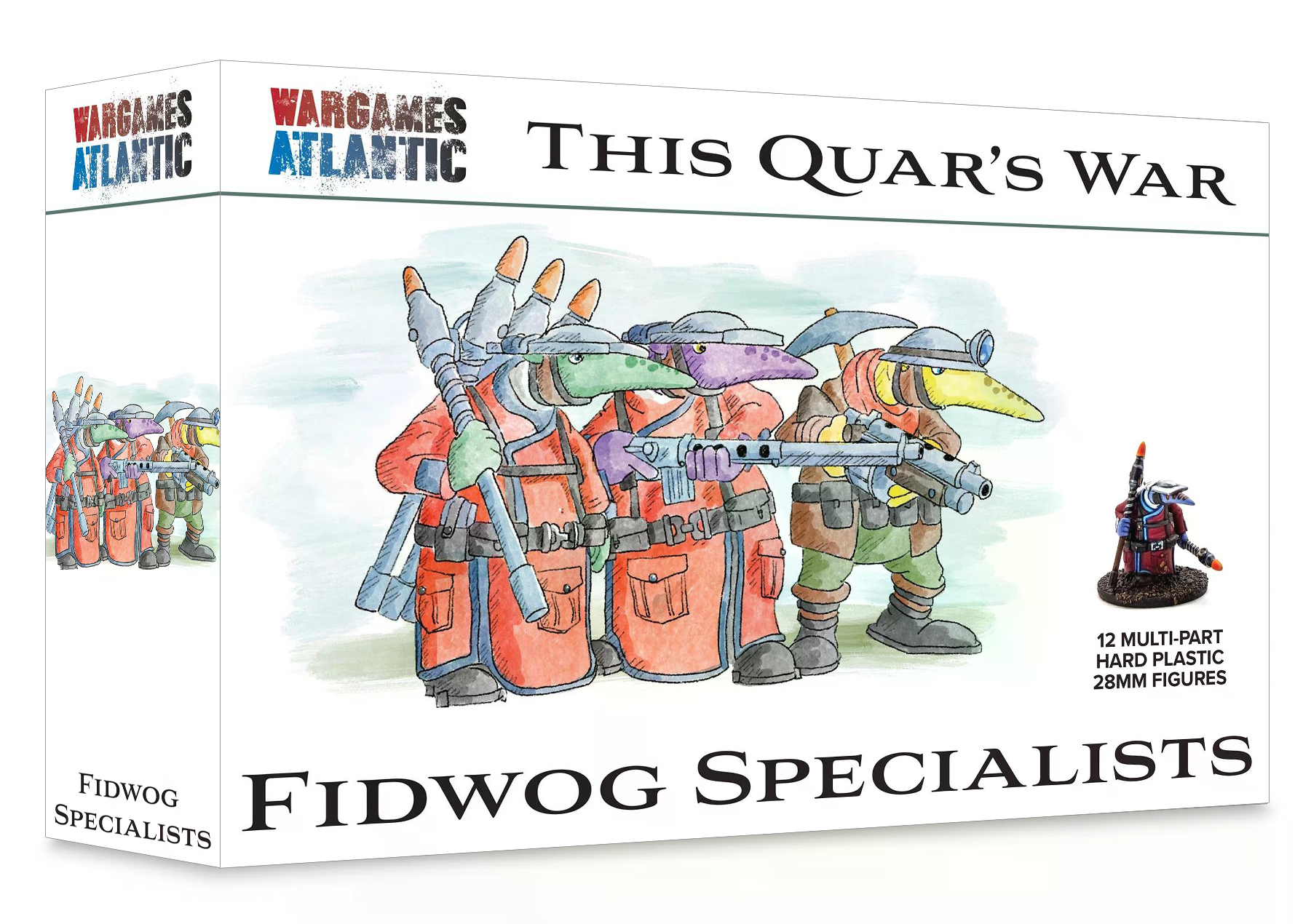 В этот набор из твердого пластика входит достаточно деталей для сборки 12 Fidwog Specialists, с опциями для Lancers, Marksquar и Miners, а также 12 двойных 25-мм подставок Wargames Atlantic.