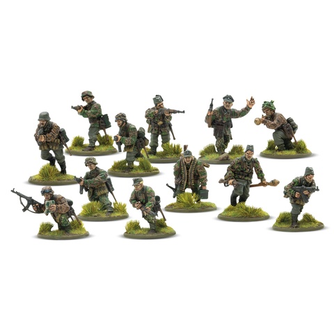 Этот стартовый набор армии позволяет вам выставить на поле боя полностью легальную армию Ваффен-СС. для Bolt Action: Third Edition — целиком из пластика! 36 пехотинцев, образующих стрелковый взвод, при поддержке минометных расчетов и пулеметов взвода тяжелого вооружения, составляют отличное ядро элитных пехотинцев для захвата и удержания целей, а также получают поддержку от бронетехники в виде командирского полугусеничного бронетранспортера Sd.Kfz. 251/10 и повсеместно используемой штурмовой пушки StuG III, образующих бронетанковый взвод. И как будто этого огневой мощи недостаточно, противотанковая пушка PaK 40 добавляет артиллерийский взвод для нанесения дополнительного урона.