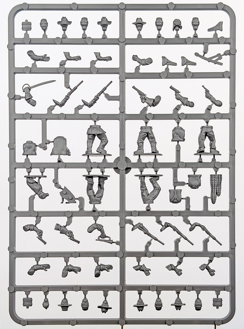 Вооруженные пистолетами, карабинами и закалкой, они приносят дисциплину и огневую мощь в город, где справедливость царит беспредел, а беда никогда не дремлет. Фигурки из этого набора могут использоваться для представления фракций кавалерии США или «Буффало Солдат» из игры Dead Man's Hand. Включает 10 сборных пластиковых миниатюр с большим количеством вариантов кастомизации, чем у интенданта в день зарплаты. На литнике находятся пистолеты, кавалерийские карабины и все необходимое для вооружения вашего отряда; в качестве дополнительных опций предлагается верный пес, готовый вынюхать беду или затмить всех на месте происшествия.