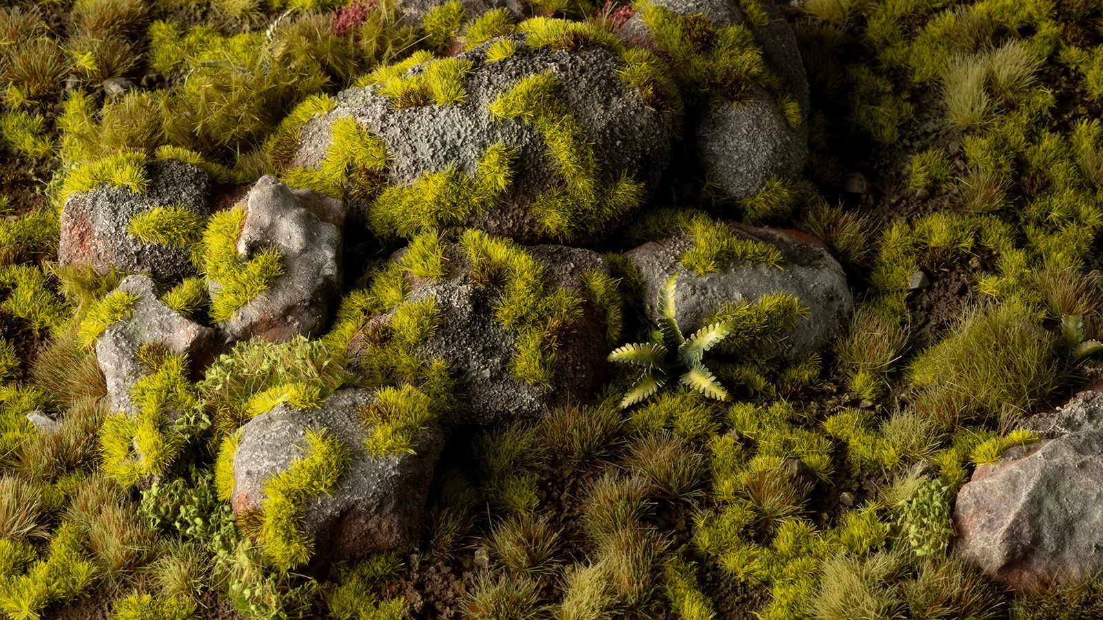 Низкие стелющиеся пучки с яркой зеленью идеально подходят для имитации разнообразных мшистых местообитаний и влажных лугов. В сочетании с другими цветами и размерами они создают захватывающие вариации цвета и высоты в ваших композициях.