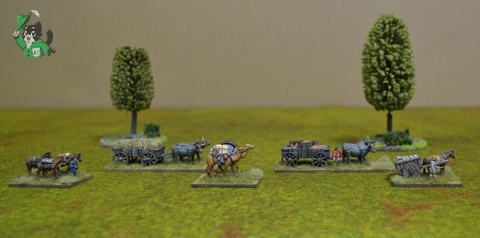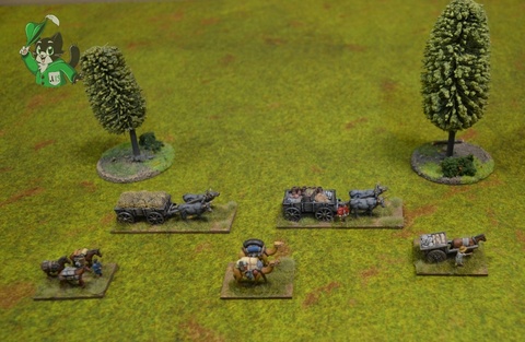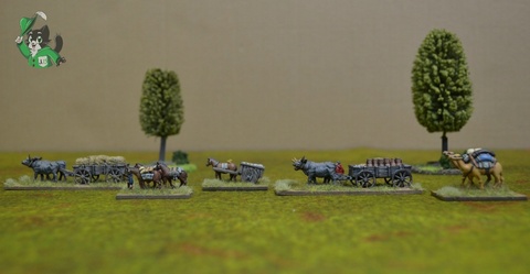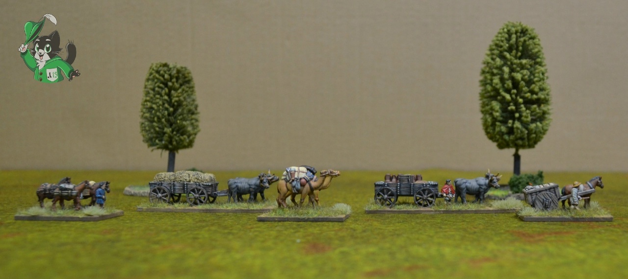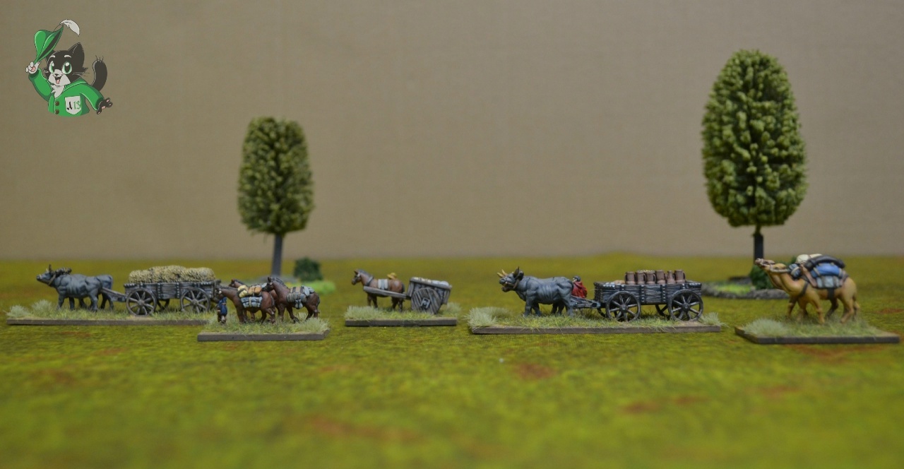 Помимо того, что обоз отлично смотрелся на столе, придавая завершенный вид лагерю или крепости, он также мог стать центральной целью сценария, поскольку незащищённый обоз — это армия без снабжения!