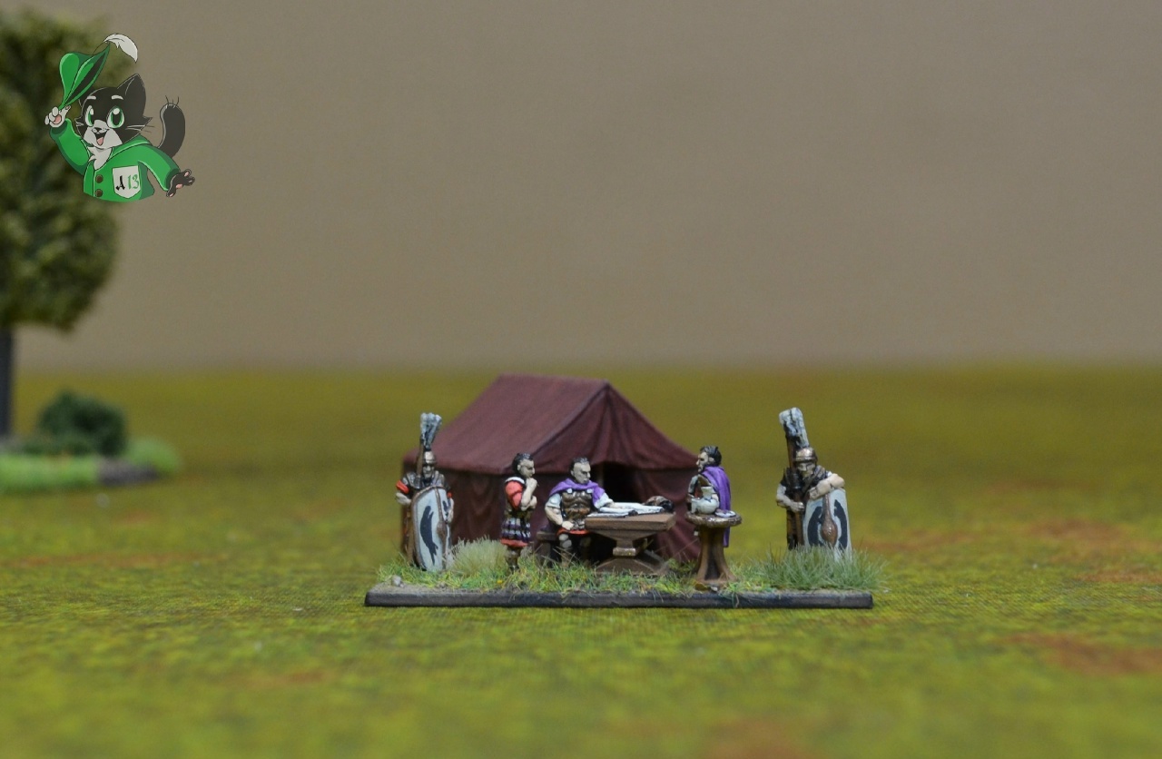 Предоставляя один по-настоящему величественный шатер и группу офицеров, обдумывающих свой следующий шаг, «Roman Generals Headquarters» станет отличным дополнением к любой коллекции Roman Hail Caesar Epic Battles, будь то украшение стола или отображение командиров прямо за линией фронта!
