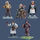 Группа безумных ученых. 5 миниатюр из белого металла. Поставляются не окрашенными. Может потребоваться небольшая сборка. Масштаб 28 мм. Подойдут для настольных и ролевых игр.