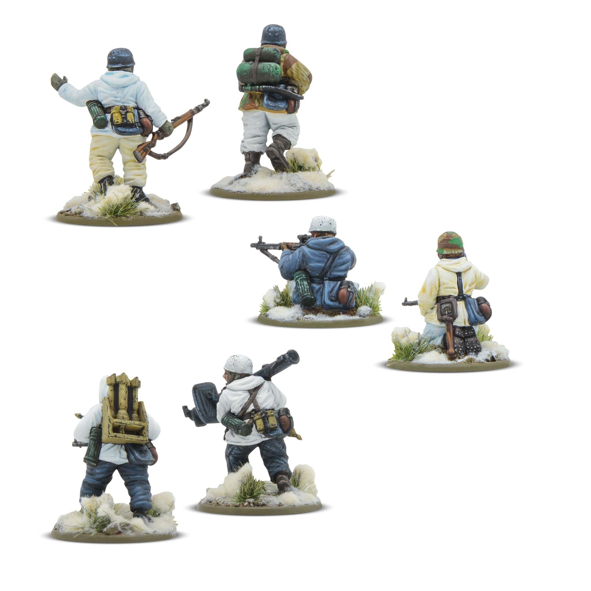 В этом наборе вы найдете три пехотных оружейных команды для вашей коллекции Bolt Action Fallschirmjäger , все одеты в зимний комплект. Смертоносный противотанковый гранатомет Panzerschreck угрожает бронетехнике Союзников, в то время как огнеметная команда, основа инженерных взводов, готова испепелить все на своем пути. Поддерживает обоих издалека снайперская команда, вооруженная уникальным вариантом винтовки парашютиста FG 42 с оптическим прицелом.