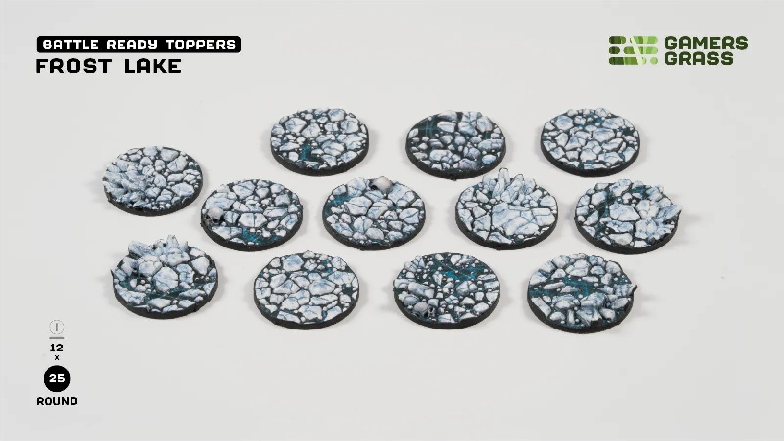 Мелководное замерзшее озеро, где лед медленно тает, крошится и дрейфует по ледяным водам. Исследуйте северные ледяные земли ваших фэнтезийных миров или покрытую льдом планету на дальней окраине галактики с темой «Морозное озеро». Эти накладки идеально подходят для легкой установки миниатюр на подставки, вовлекая ваших героев в опасные приключения и леденящие душу сценарии. Добавьте остроты своим настольным варгеймам всего за один шаг!